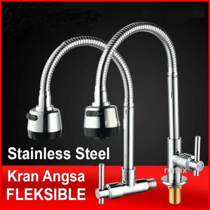 Kran Keran Air Angsa Fleksibel Tembok Sink Kuningan Piring Wastafel
