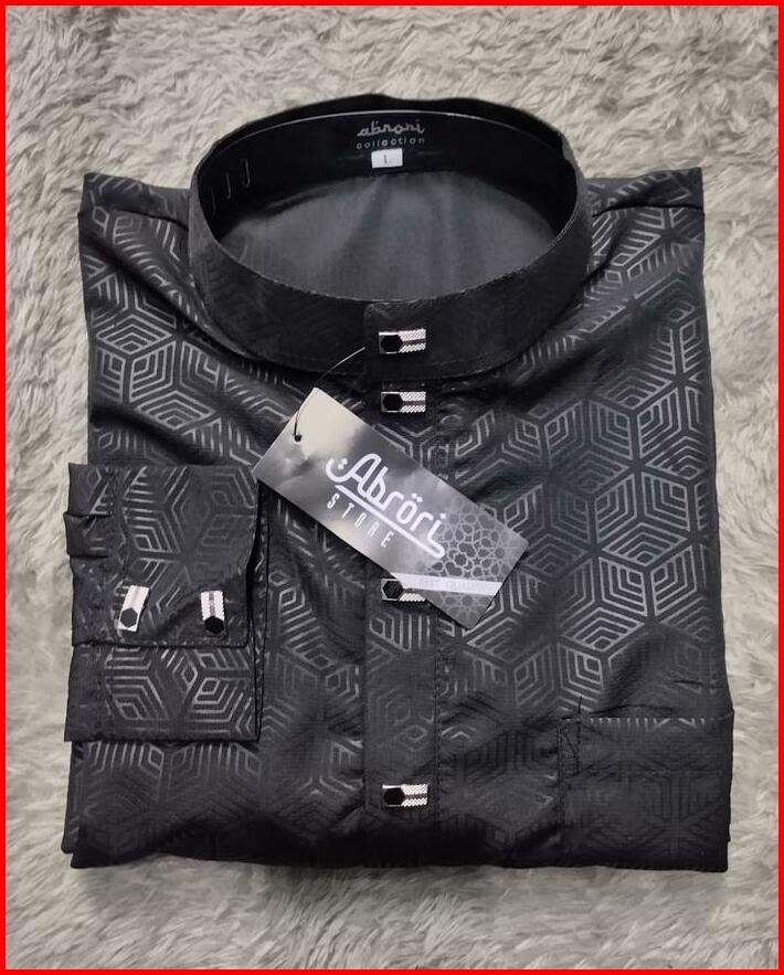 Jubah Embos Hexsagonal Jubah Pria Gamis Pria Manset Kancing Besi Gamis Embos Muslim Hitam