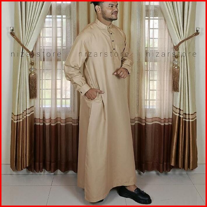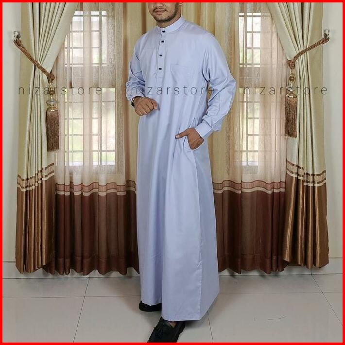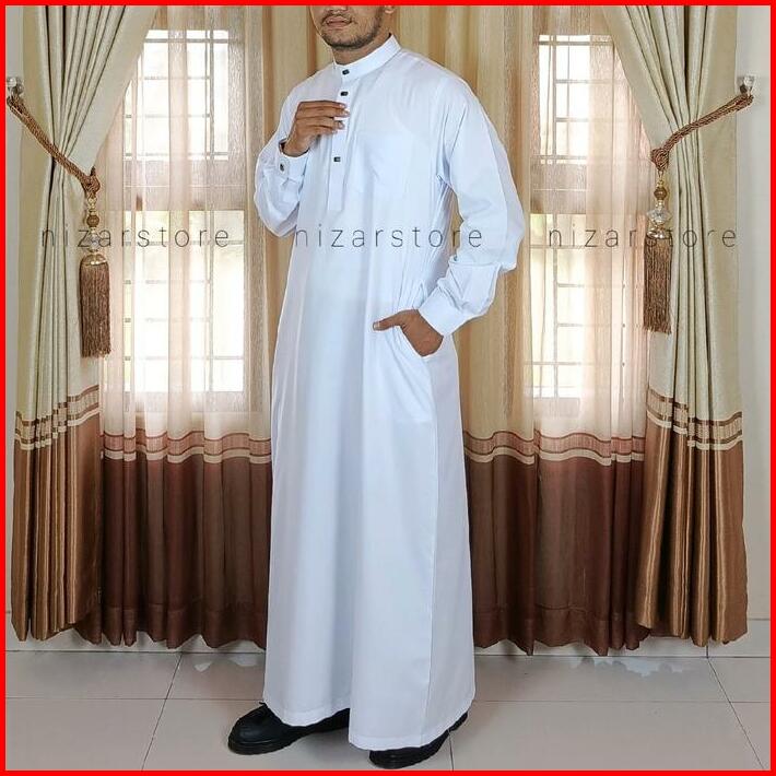 Jubah Pria Dewasa Polos Premium Katun Panjang Lengan Manset Kancing Klip Kancing Sultan Gamis Muslim Putih