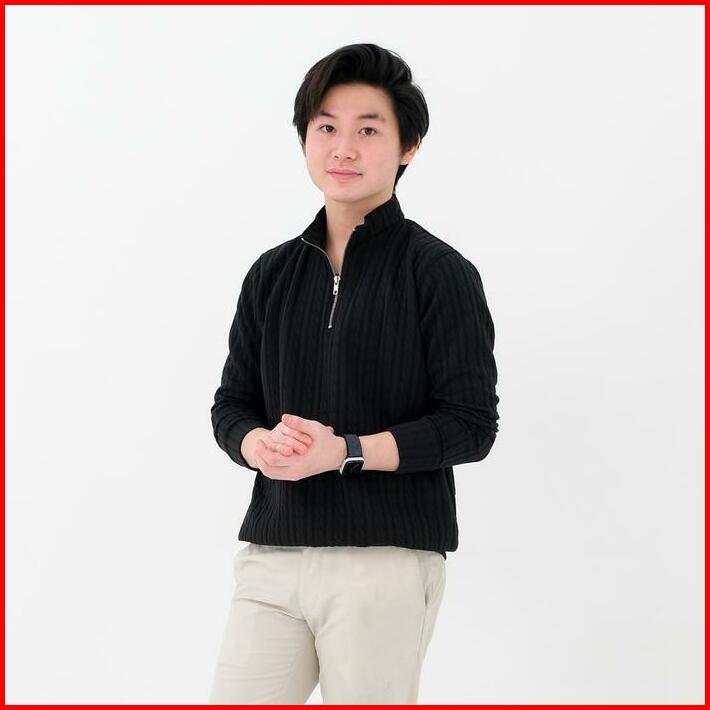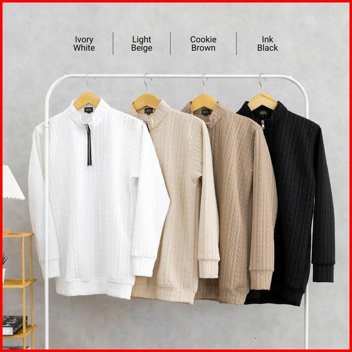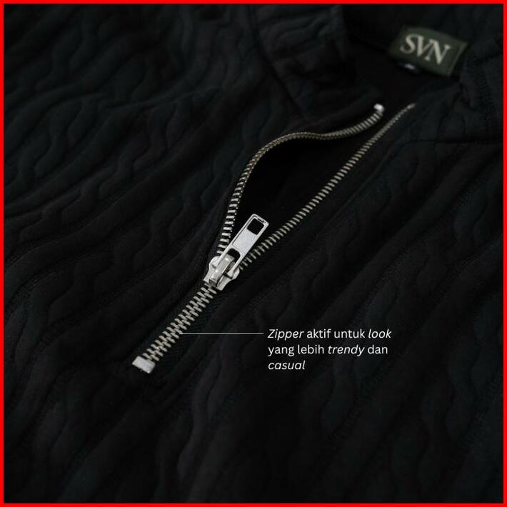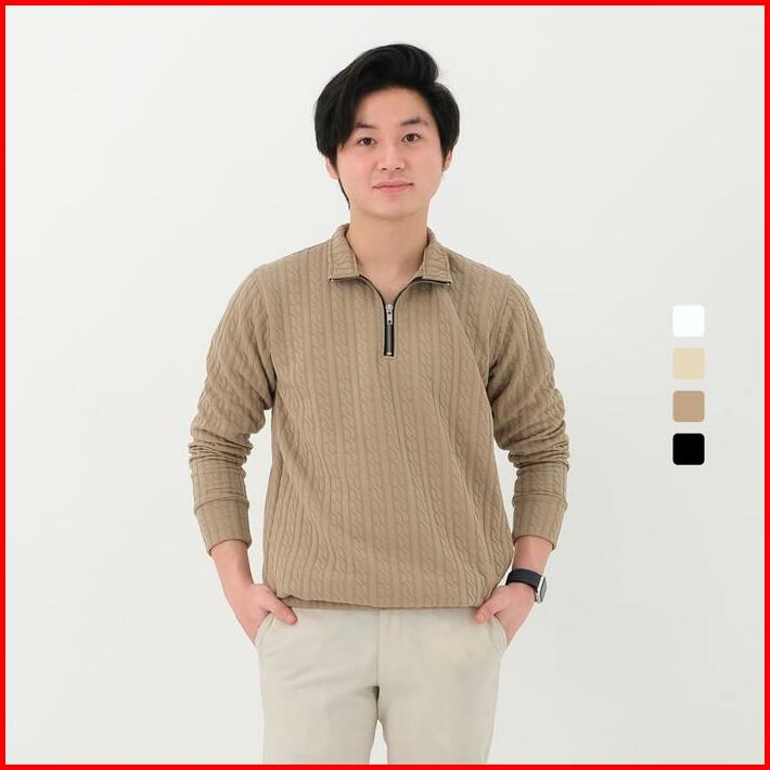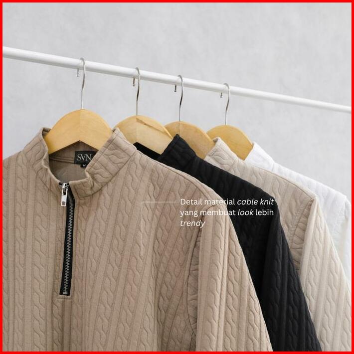 Sanvanina Cable Upper Zip Knit Sweater Jaket Rajut Lengan Panjang Pria Atasan Sweatshirt Pria