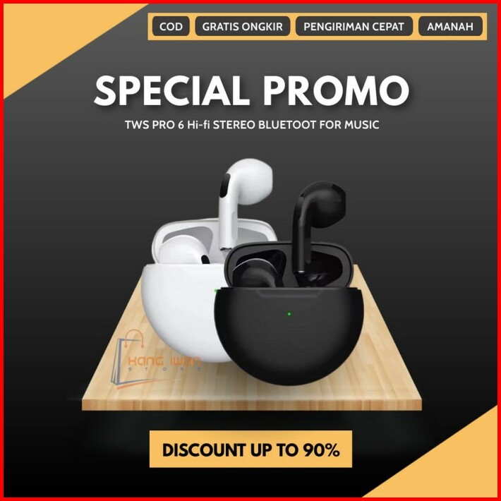 Headset Bluetooth Tws Pro 6 With Charging Case True Wireless Earbuds Smart Touch Waterproof