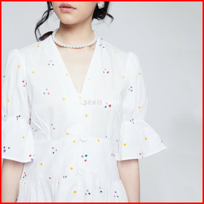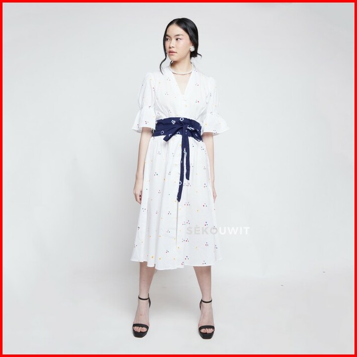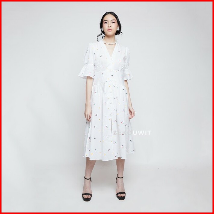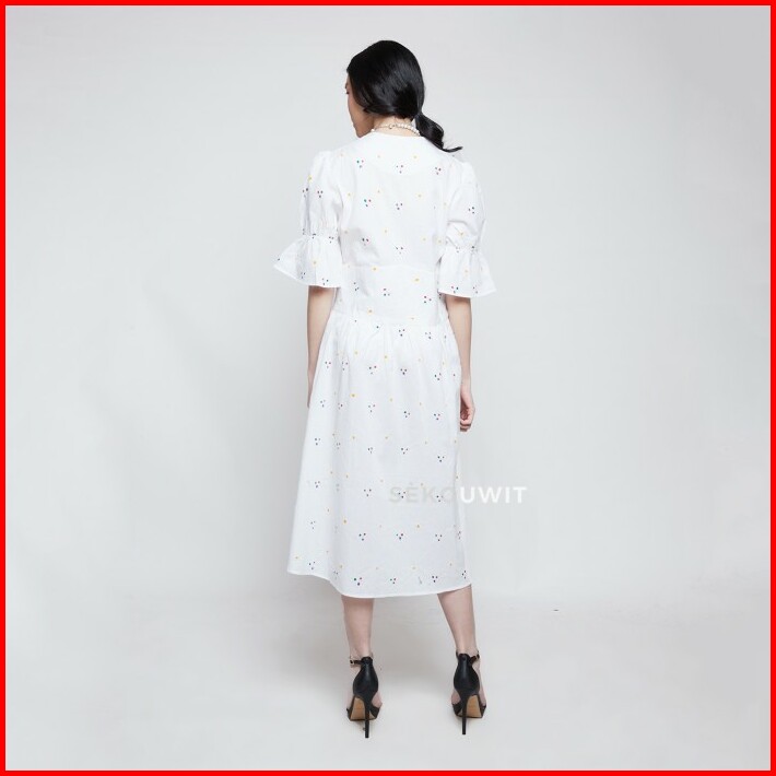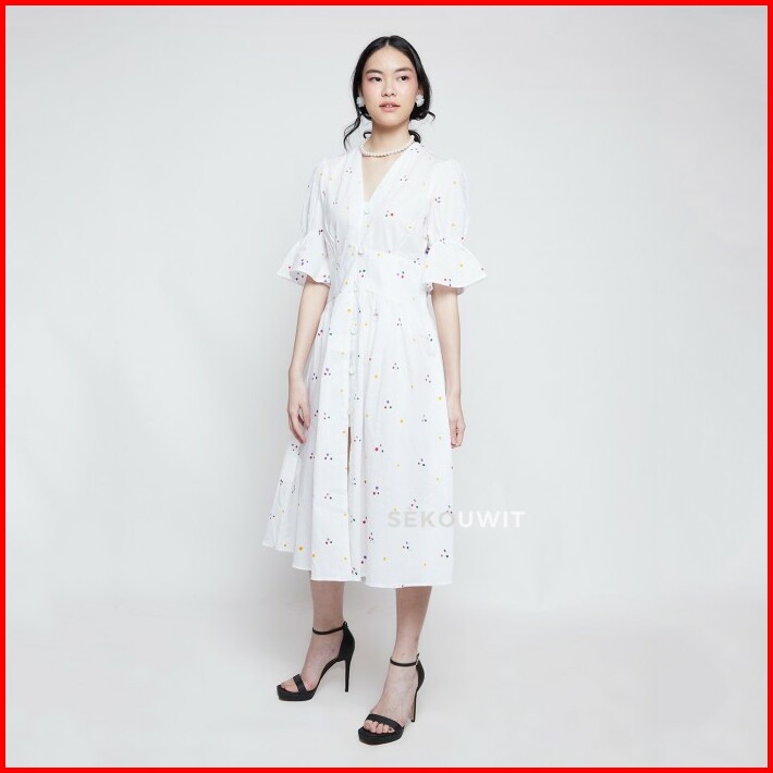 Eugenia Batik Jumputan Botton-down V Neck Midi Dress S Kouwit White