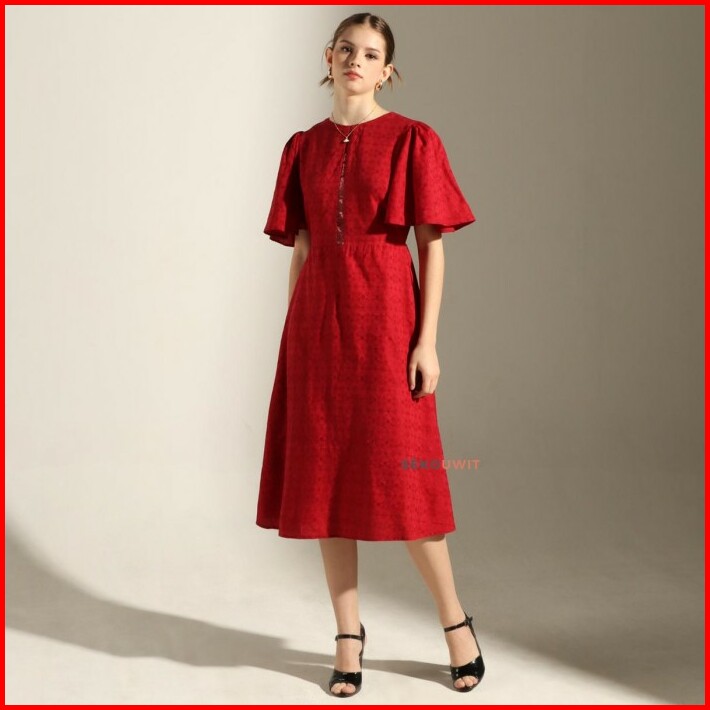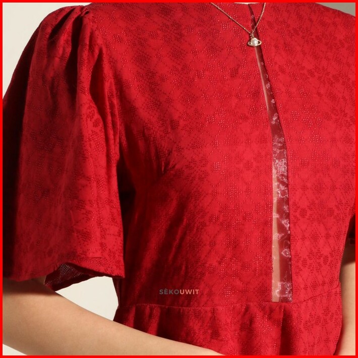 Ume Midi Dress Dobby Batik Gaun Panjang Sebetis Sekouwit In Maroon