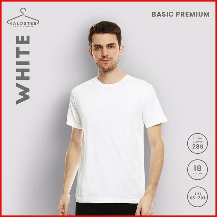 Kaos Polos Kalostee Premium Basic 28s 100 Cotton Putih White Xxl