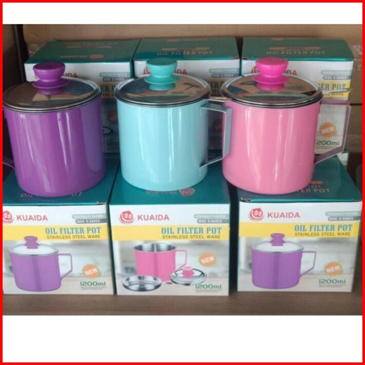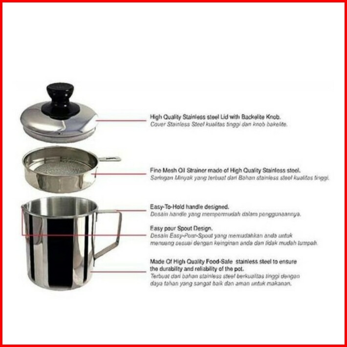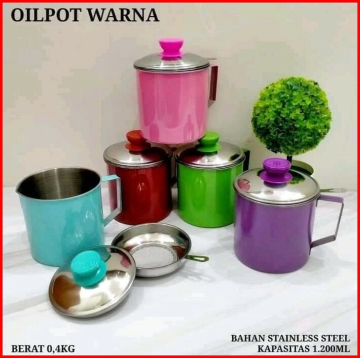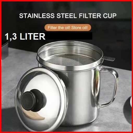 Oil Pot 1 3 Liter Tempat Saringan Minyak Bekas Goreng Stainless 12 5cm