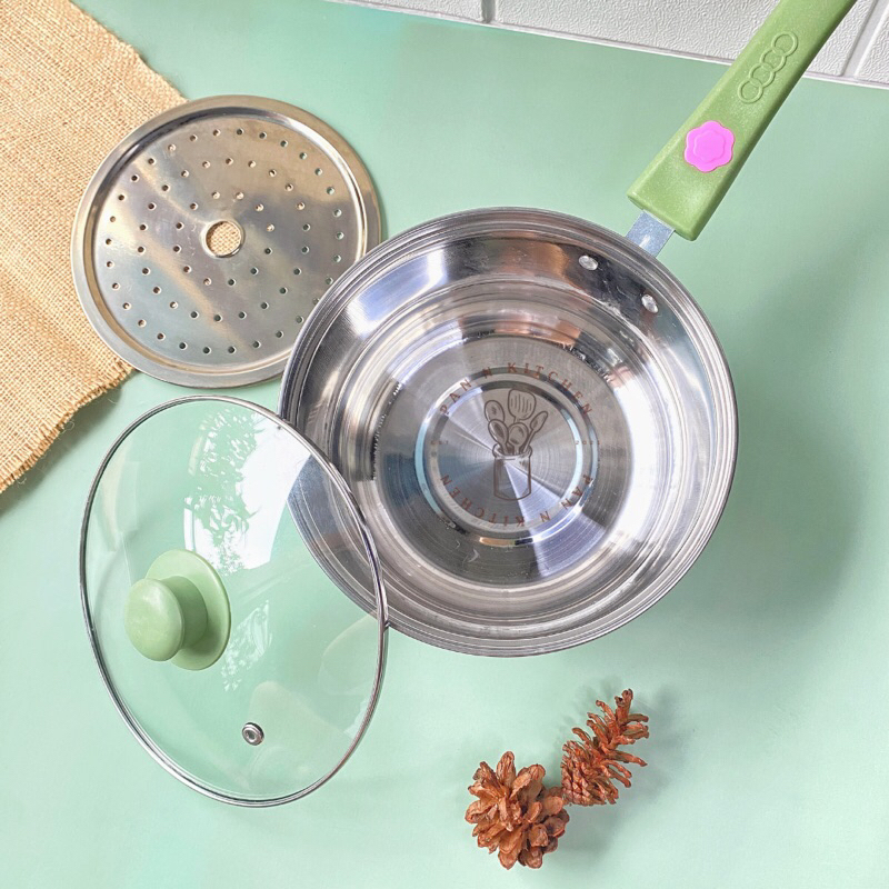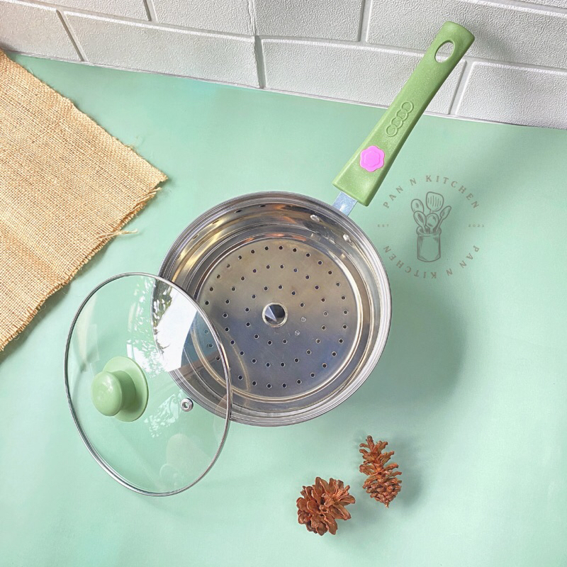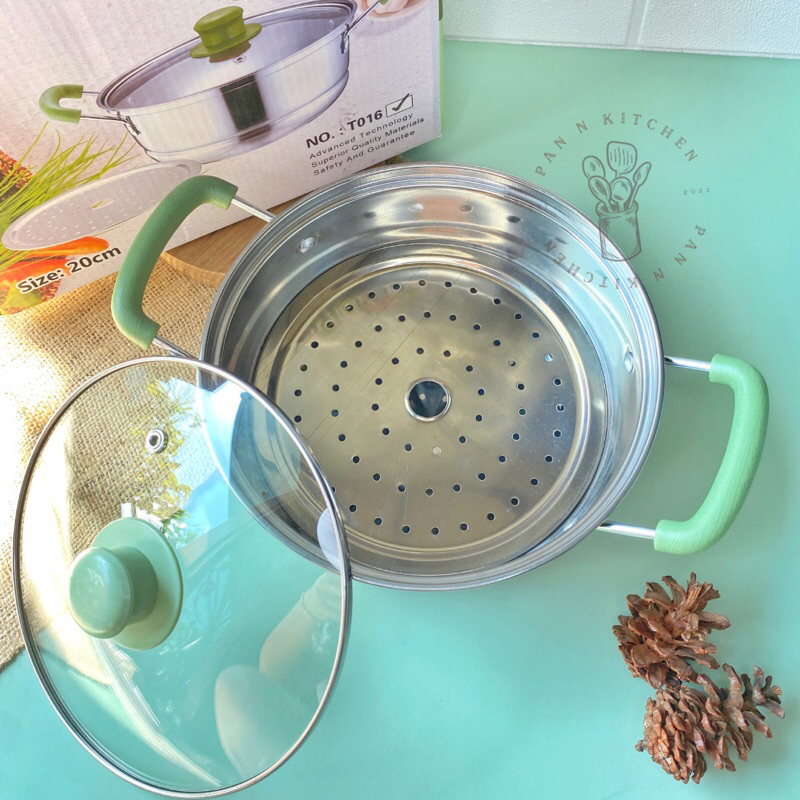 Panci Susu 20 cm + Steamer/ Panci Kukusan 1 Tingkat Stainless Steel Sinda/ Milk Pot Steamer 20 cm/ Soup Pot Steamer 20 c