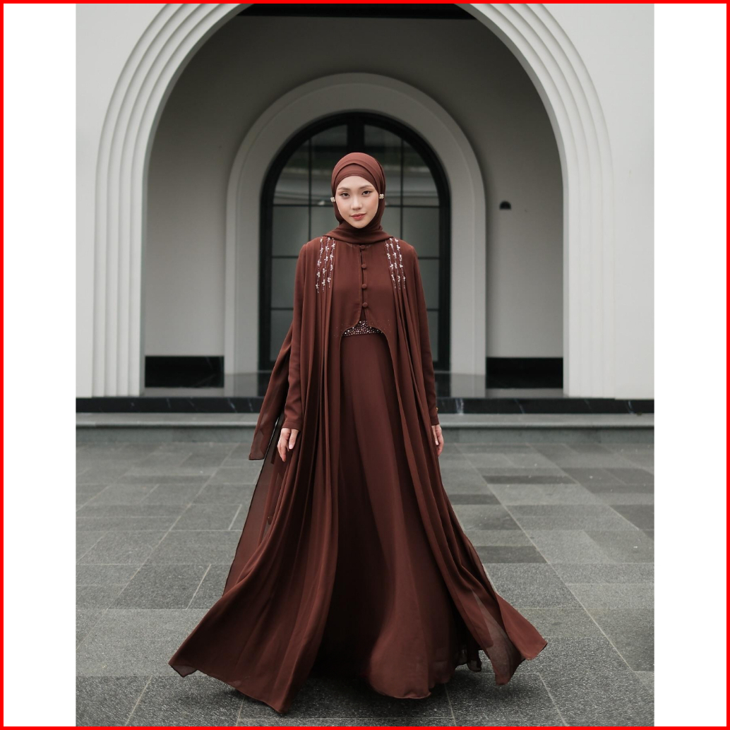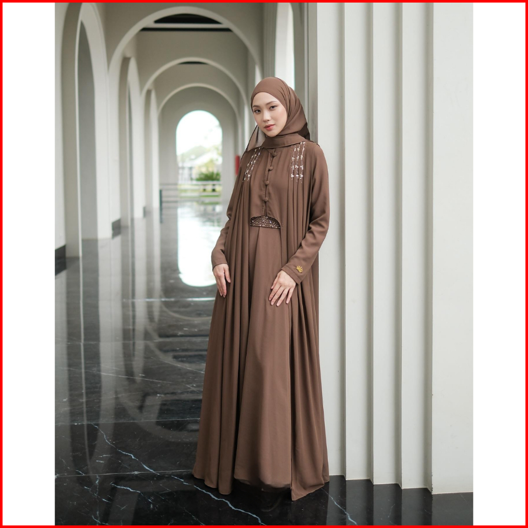 Abaya Terbaru 2025 Bahan Ceruti Premium Aplikasi Payet Swarovski Cantik Outer Terpisah 2025 Hanna