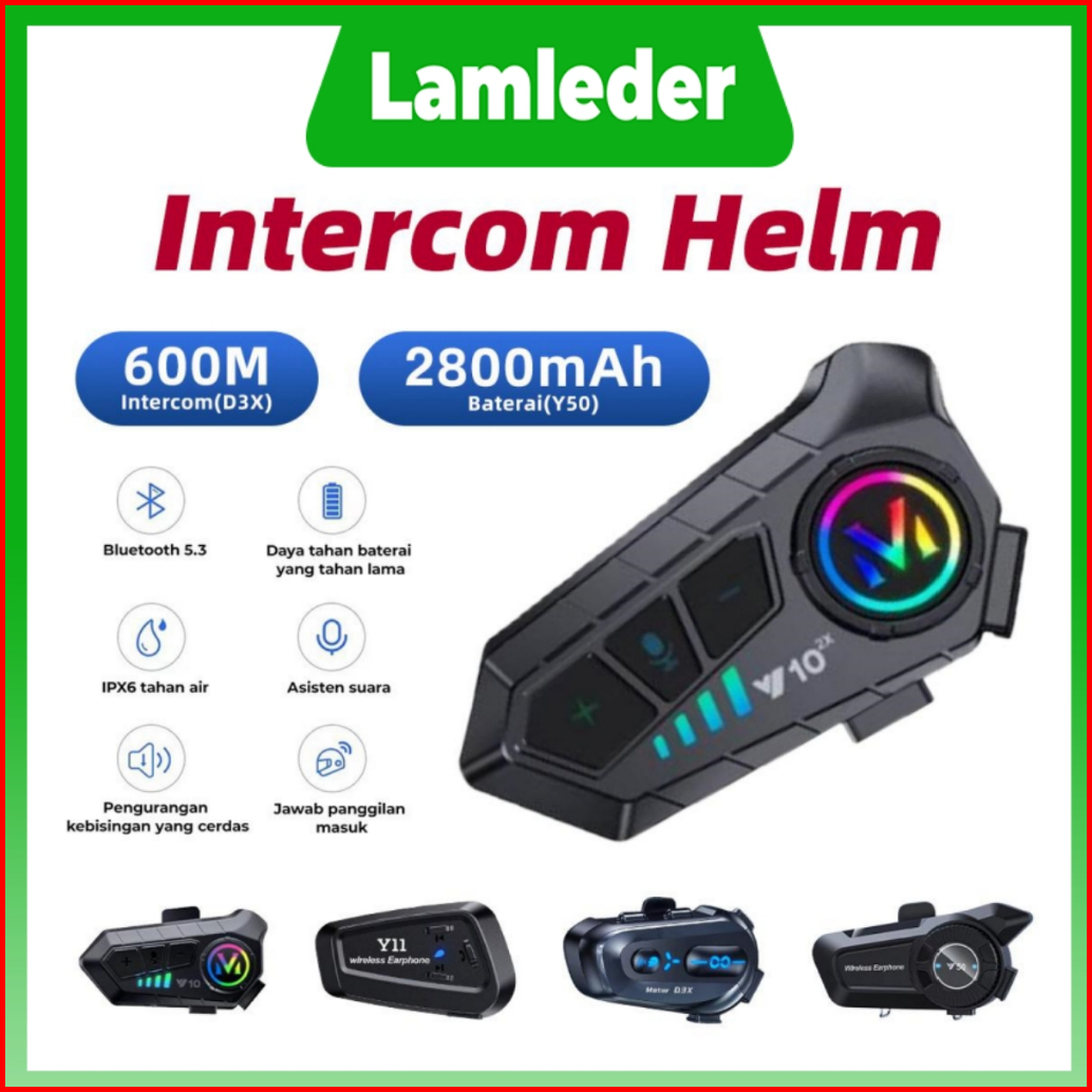 Lamleder Intercom Helm Waterproof Ipx6 Y10 Y10-2x Bluetooth 5.3 1800mah Baterai Hands Free Call