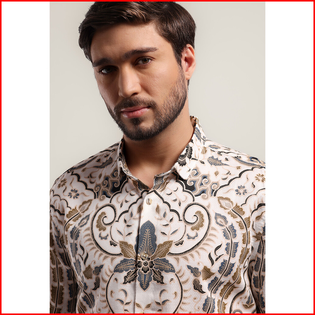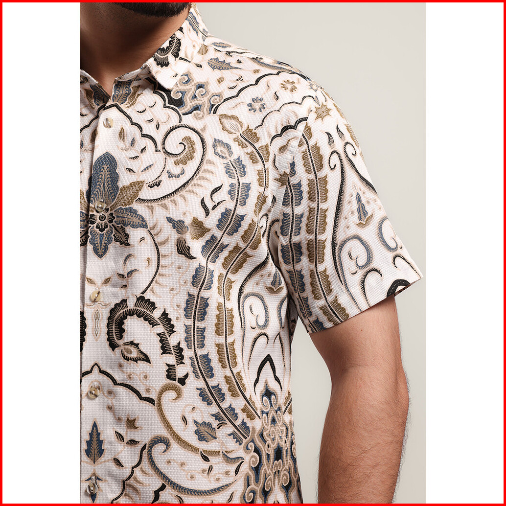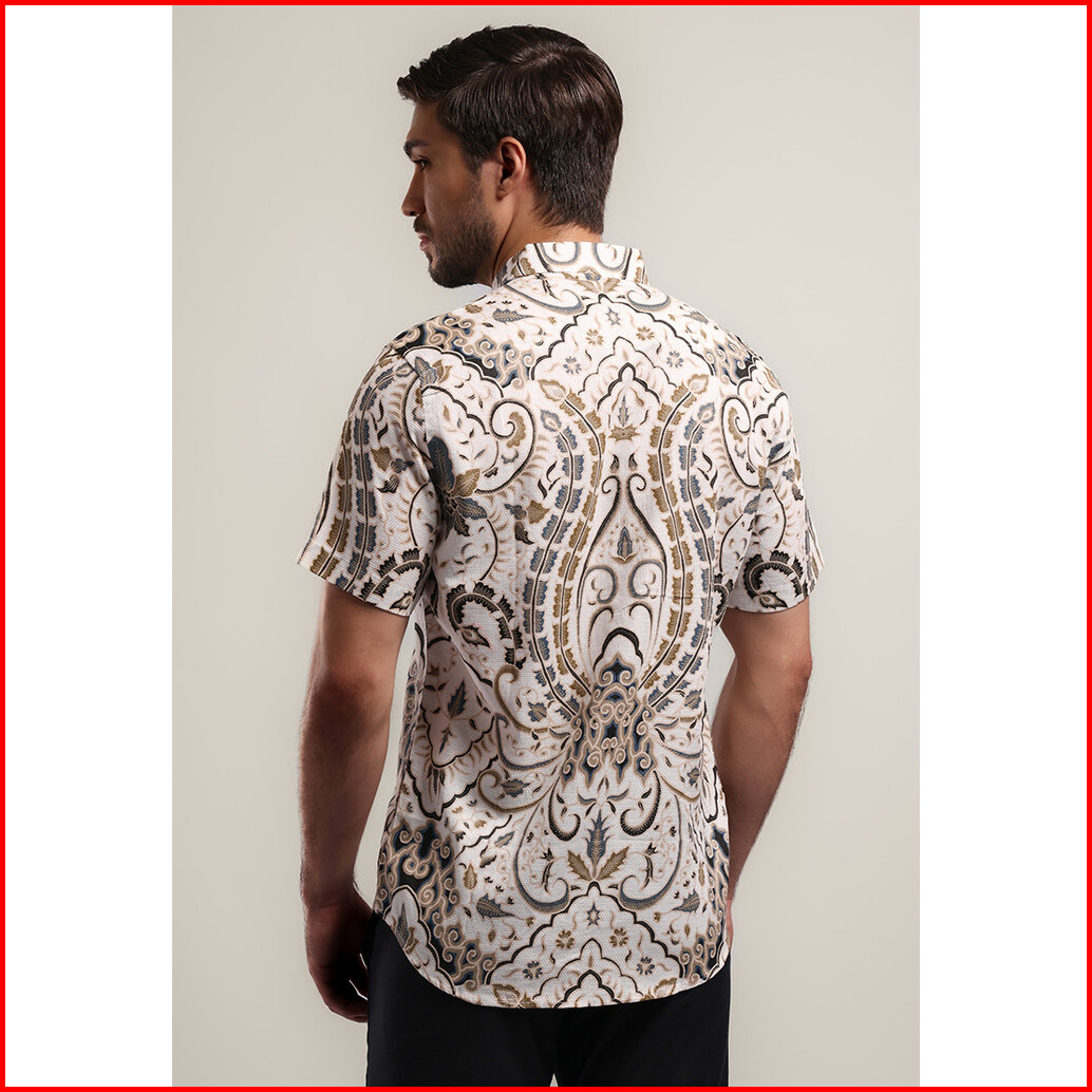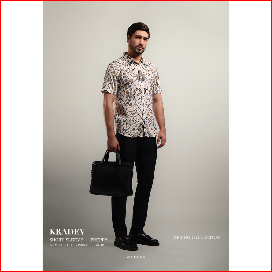 Moc Kemeja Batik Lengan Pendek Pria Kradev - White