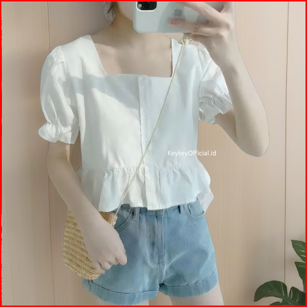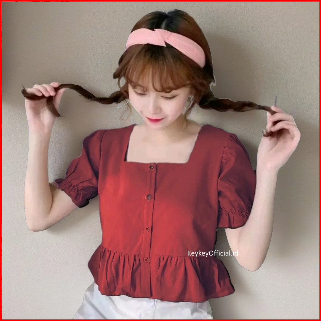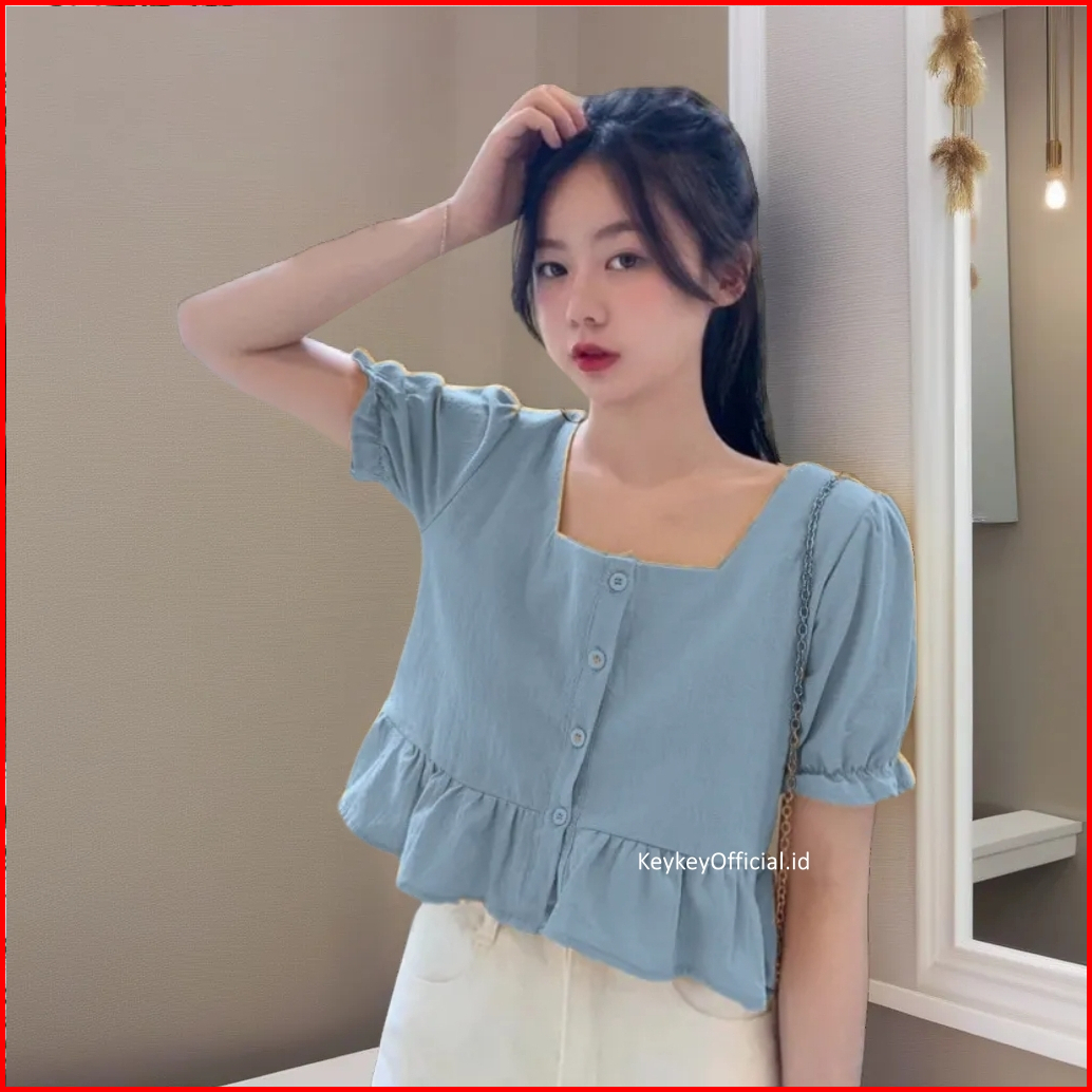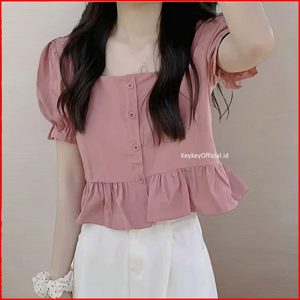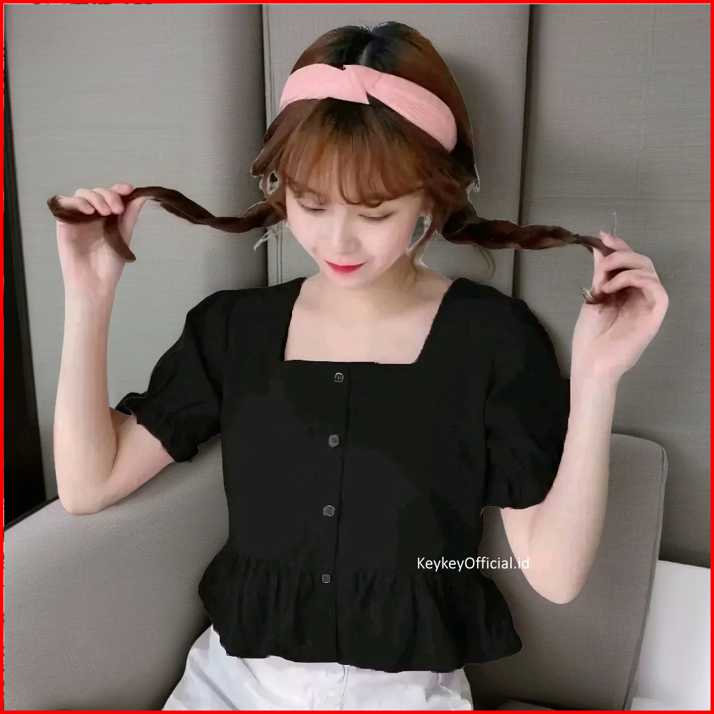 Key - 0091 Candy Crop Button Peplum Wolfis Premium Atasan Blouse Wanita Crop Peplum Wolfis Premium