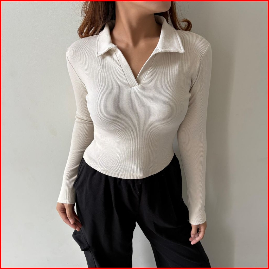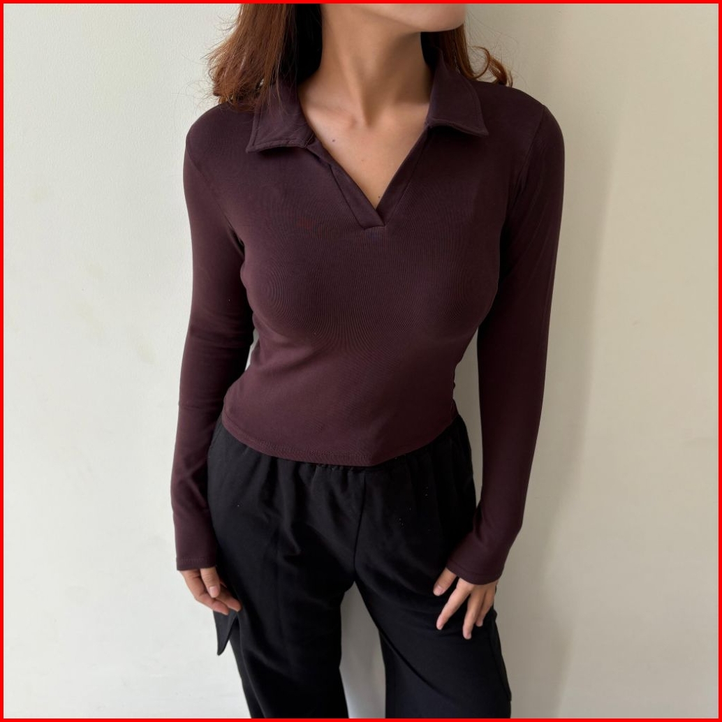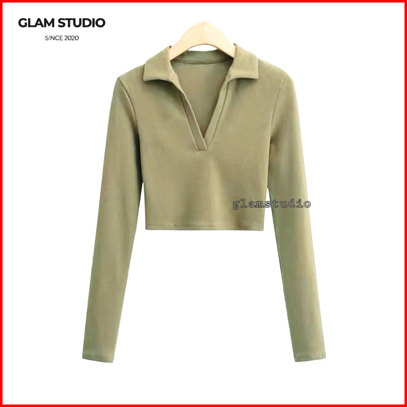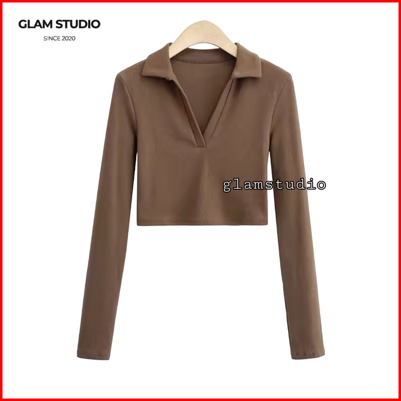 Glamstudio - Crop Top Long Sleeve V Kaos Crop Top Lengan Panjang Ctls 008