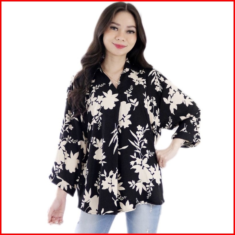 Atasan Kemeja Wanita V-neck Jumbo Rayon Bunga Ld 110 120 130 Cm Super Big Size Xxxxxl 5xl 4521