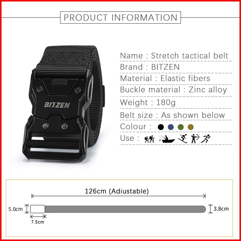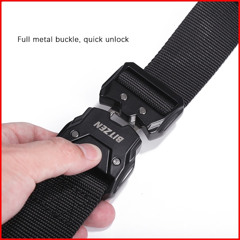 Bitzen Ikat Pinggang Pria Nylon Fast Unlock Canvas Sabuk Tactical Gesper Tali Pinggang Pria