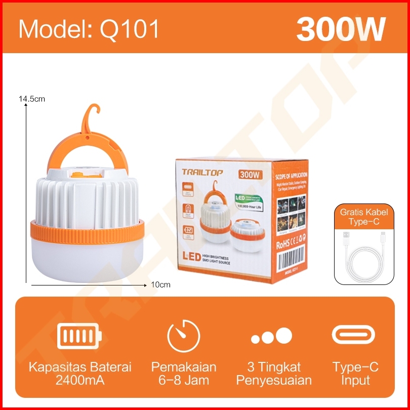 Trailtop Lampu Camping Led Lampu Emergency Super Terang Tahan 6-8 Jam Charger Type-c