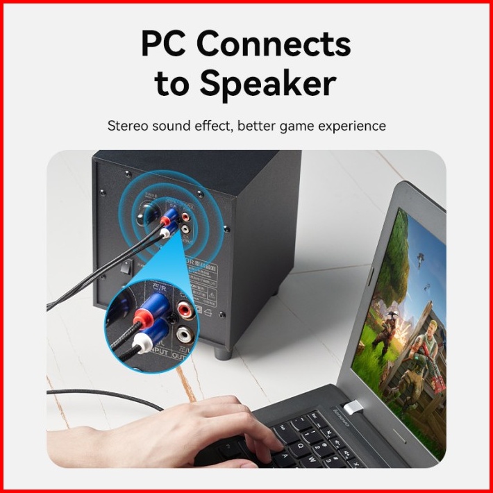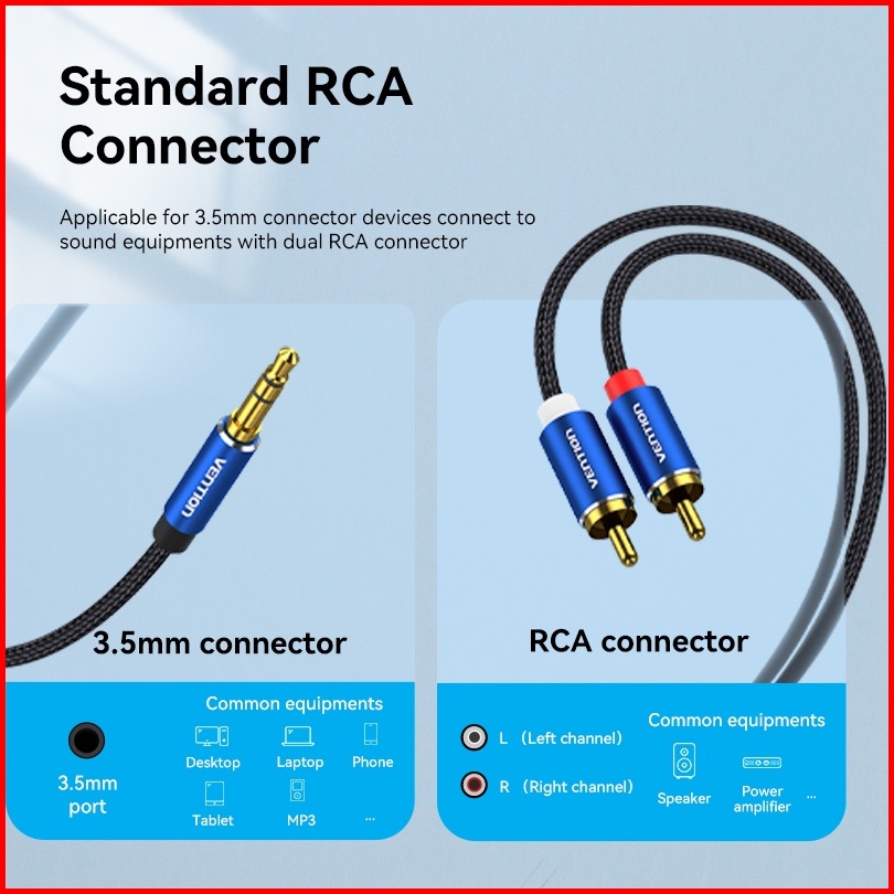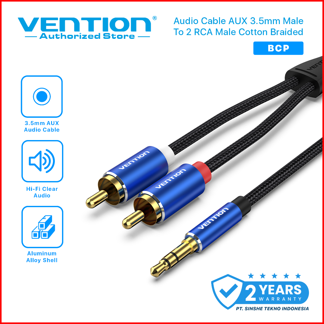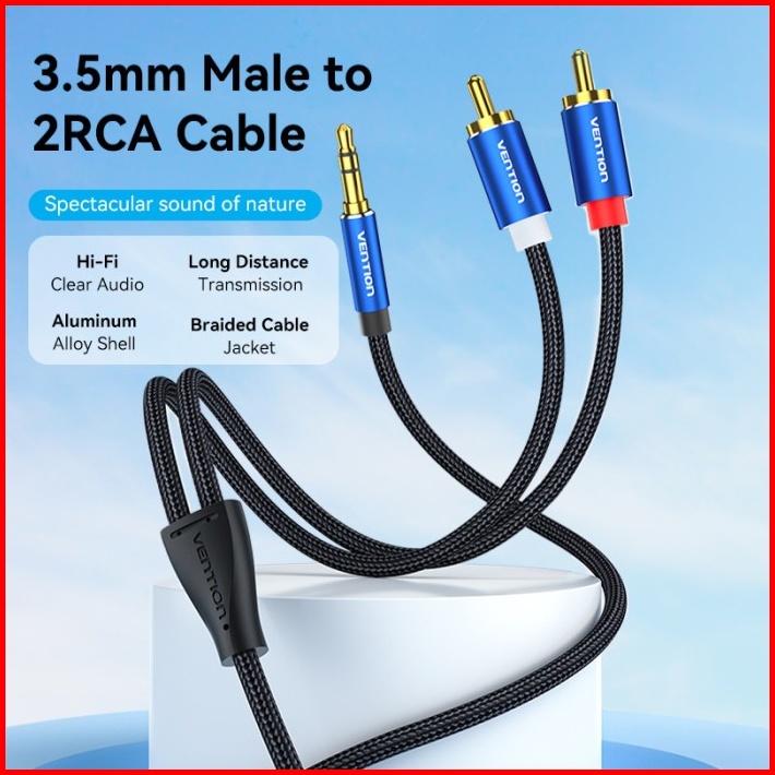 Vention Kabel Aux 3.5mm To 2 Rca Male Braided Speaker Audio Stereo Speaker Home Music
