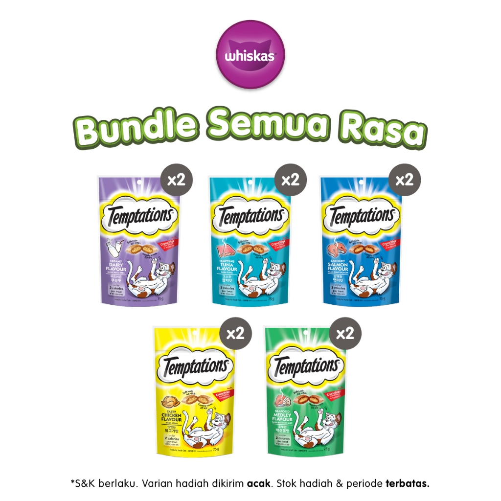 TEMPTATIONS Mega Pack Snack Kucing Kering 75gr Multivariant Semua Rasa Isi 10
