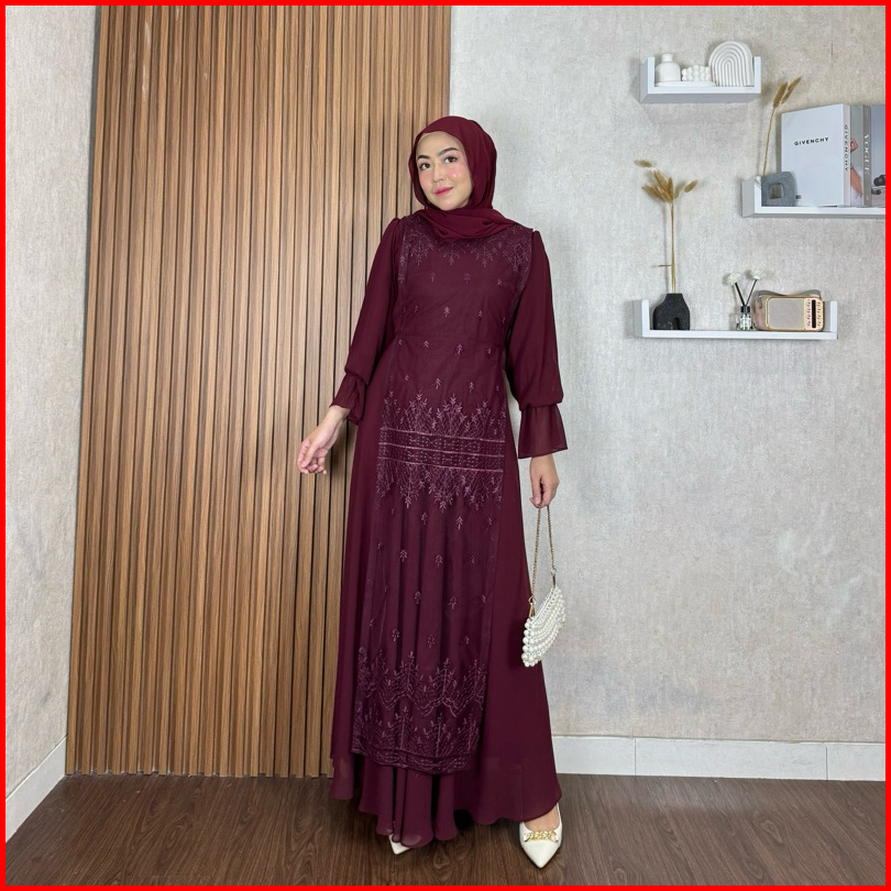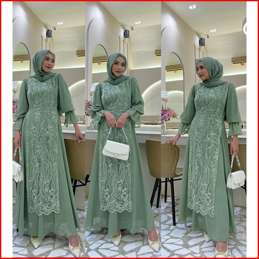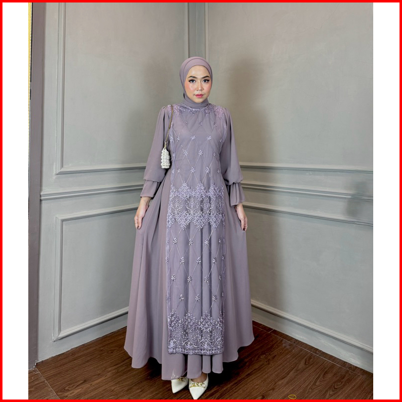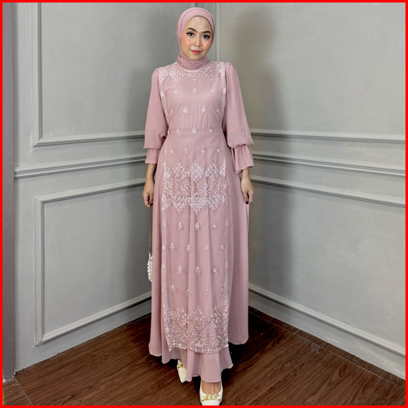 Jasmine Dress Brukat Ceruty Kondangan Baju Wisuda Lamaran Seragam Bridesmaid Keluarga Gamis Pesta