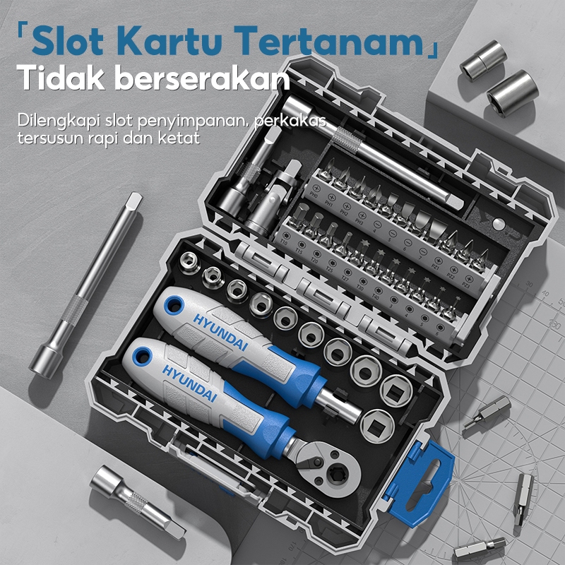 HYUNDAI Obeng Set Lengkap Kunci Shock Set Screwdriver Kunci Ratchet Toolkit Alat Multifungsi