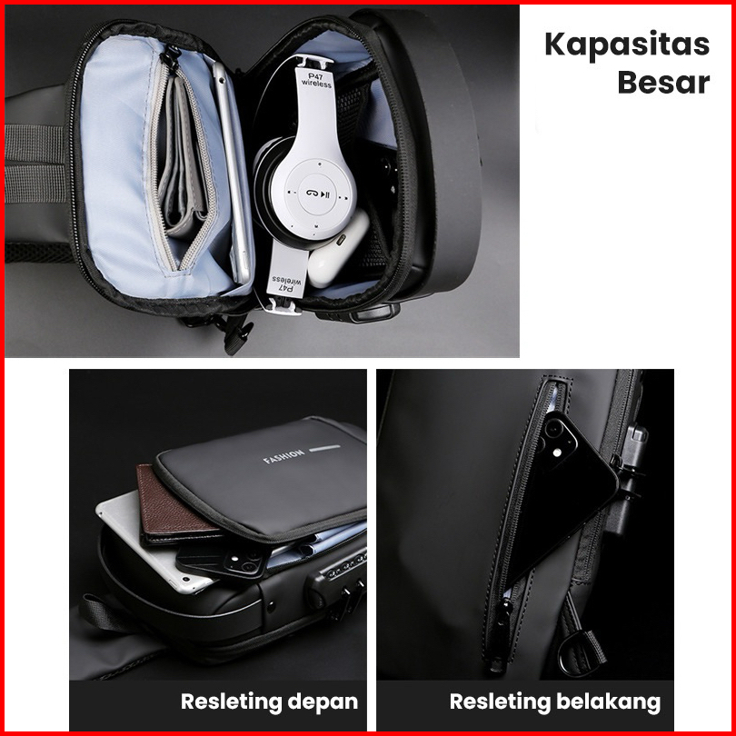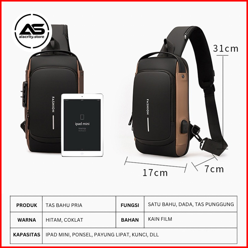 Alacrity X314 Tas Selempang Pria Anti Maling Multifungsi Usb Port Shoulder Bag Anti Air