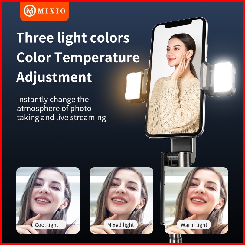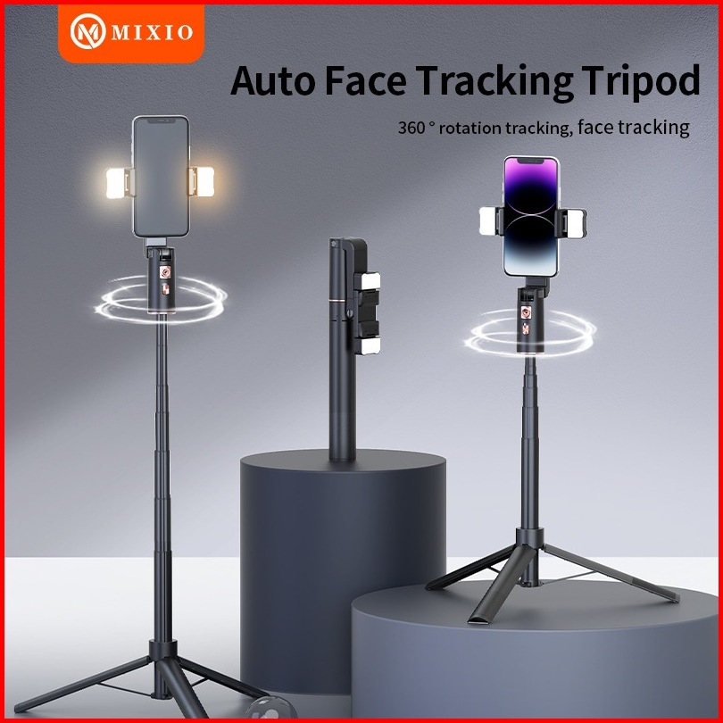 Mixio A100 Auto Face Tracking Tripod 1.5m Gimbal Handphone Stabilizer 360 With Dual Lampu Led