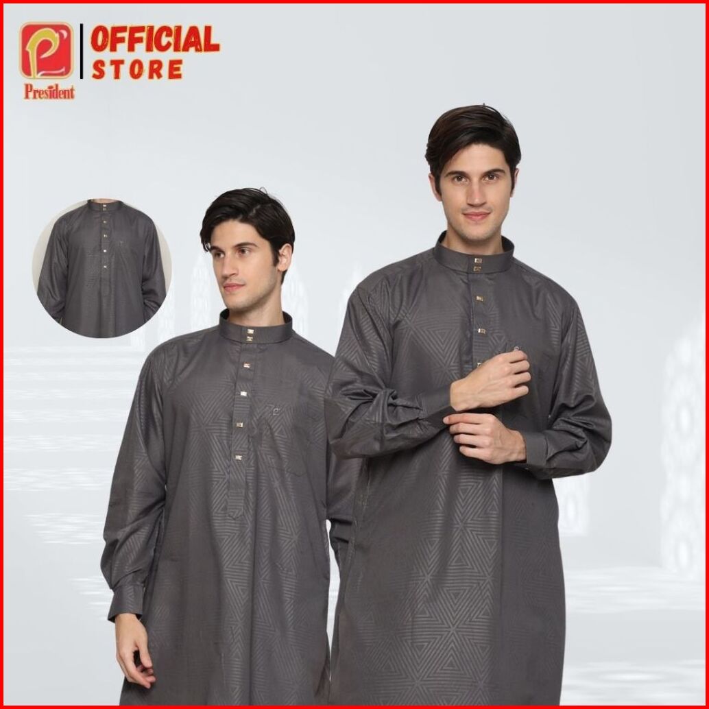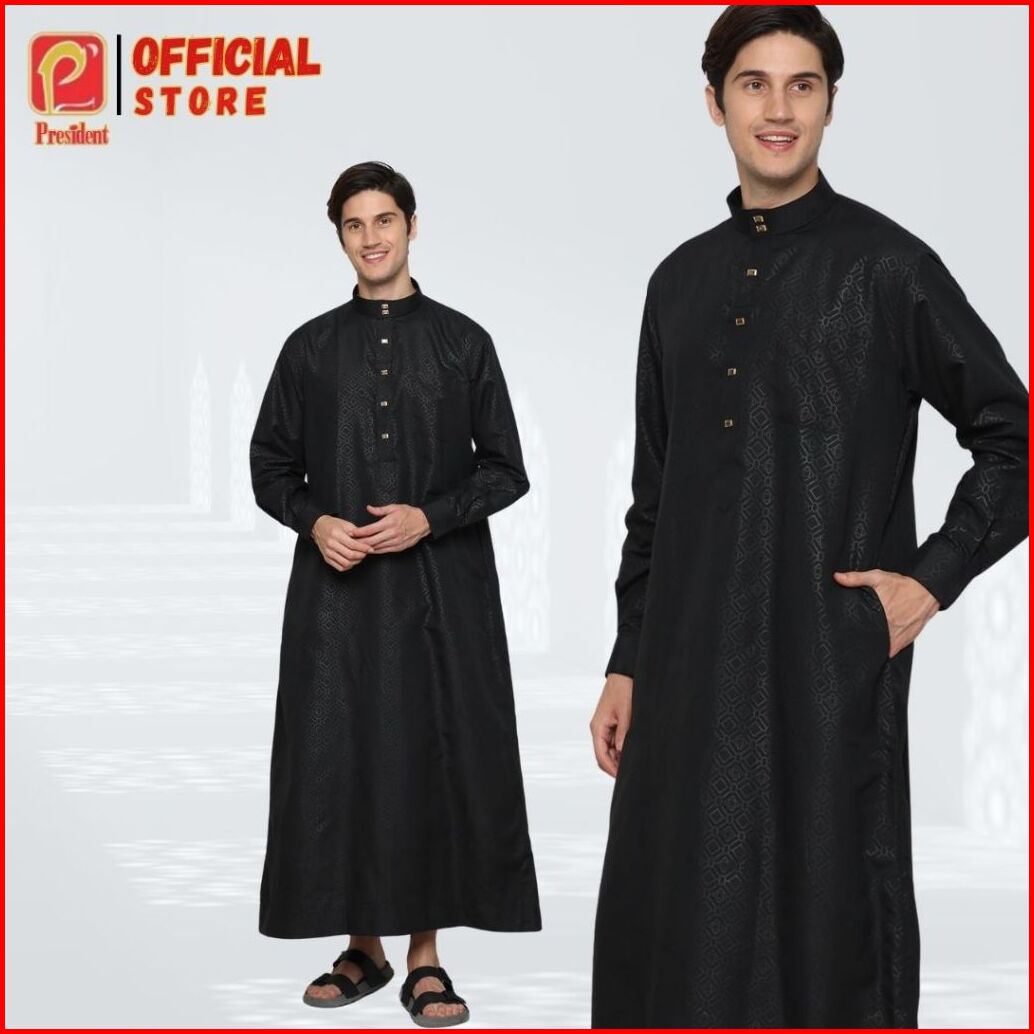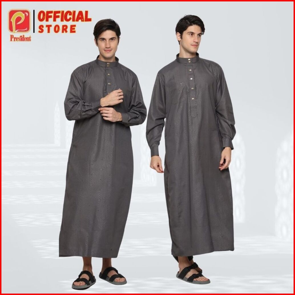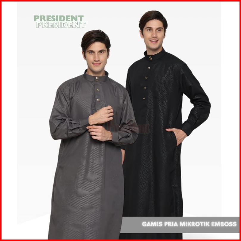 President - Gamis Pria Dewasa Remaja Jubah Laki-laki Lengan Panjang Reguler Premium Mikrotik Kerah