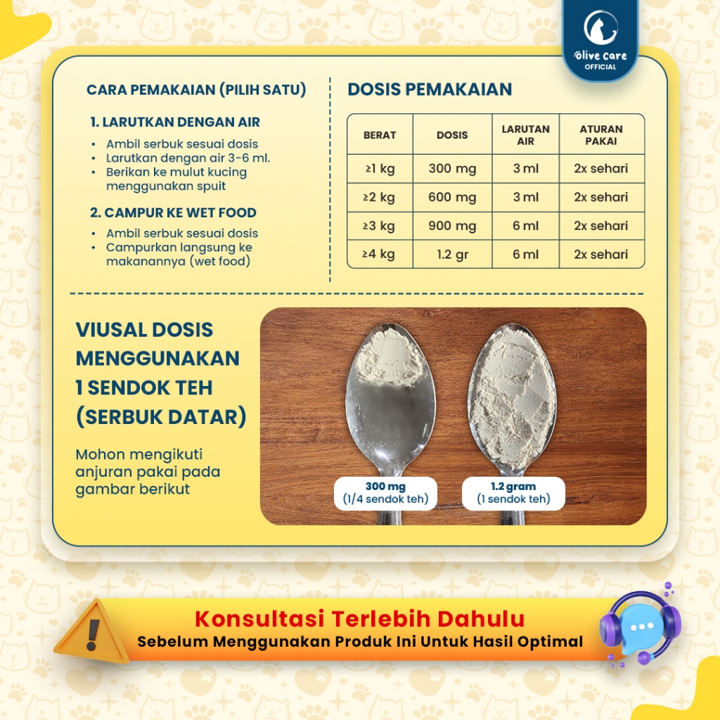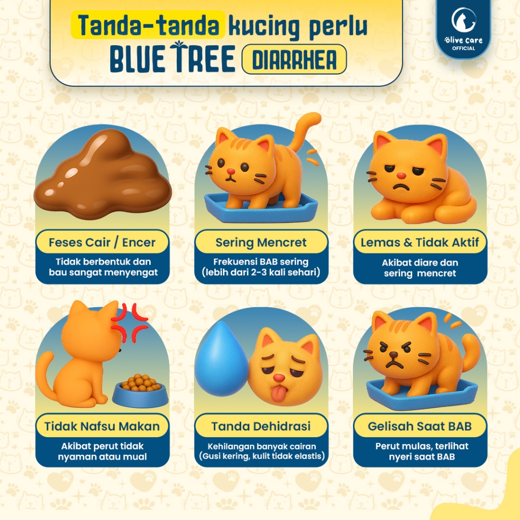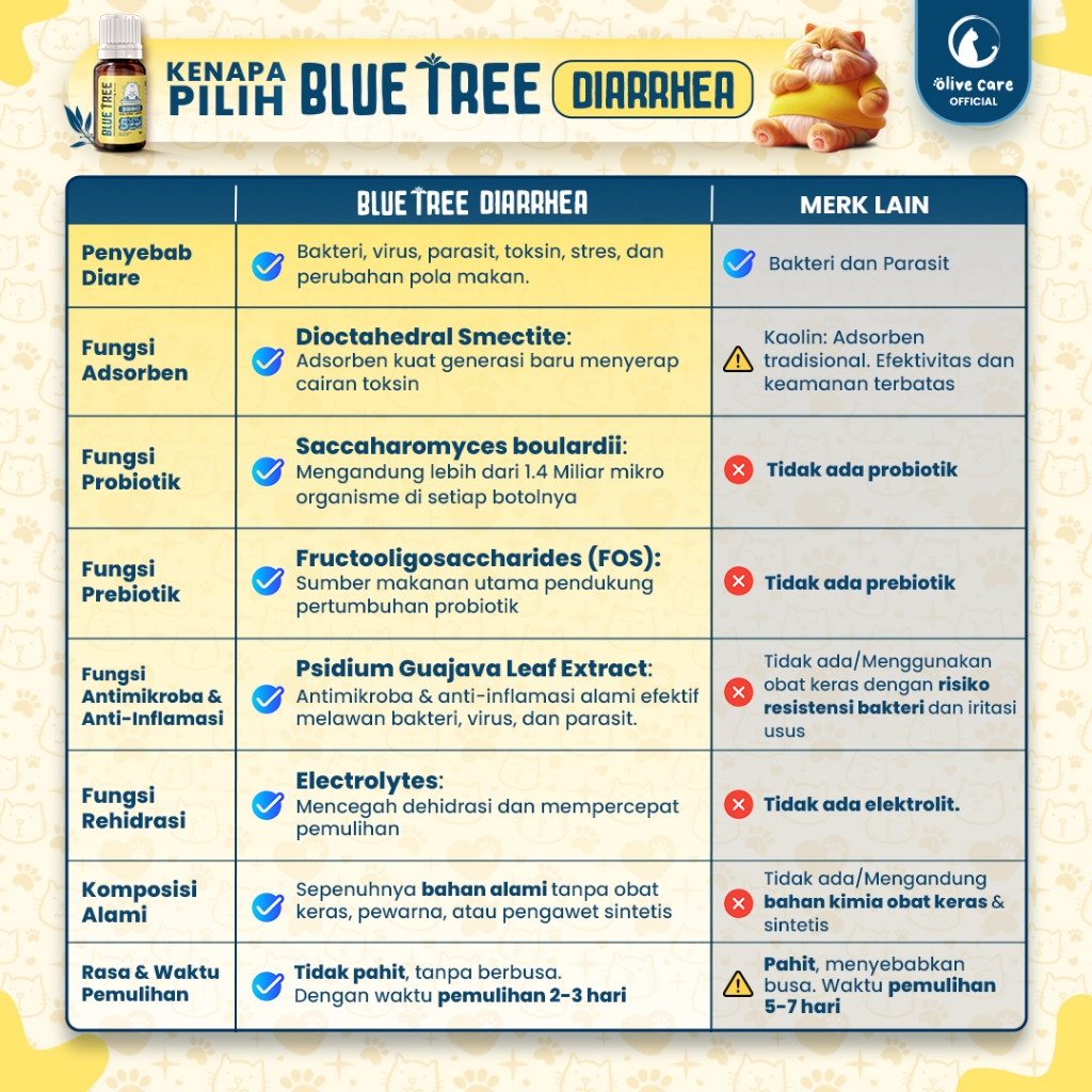 Olive Care Vitamin Obat Kucing BLUE TREE Diarrhea (Diare) dengan 5 Lapis Perlindungan Usus kandungan Probiotik, Prebioti