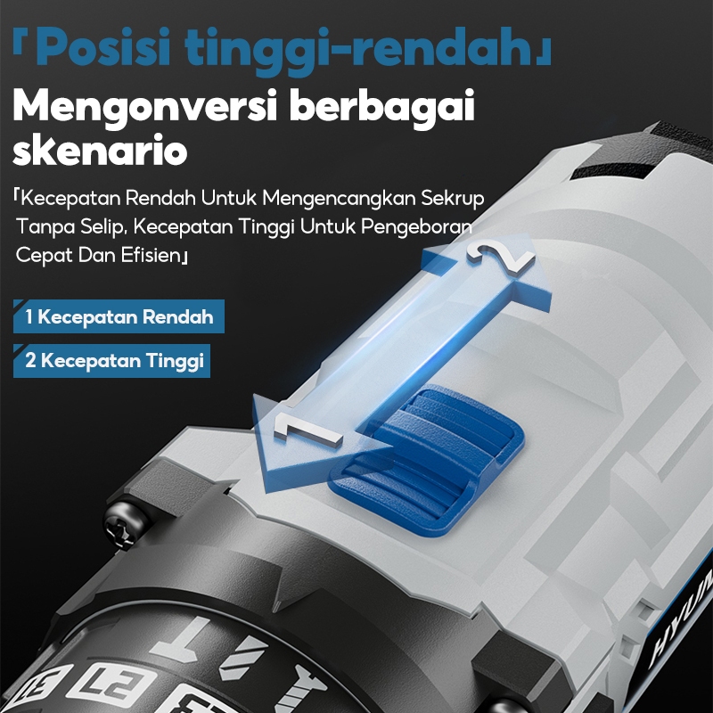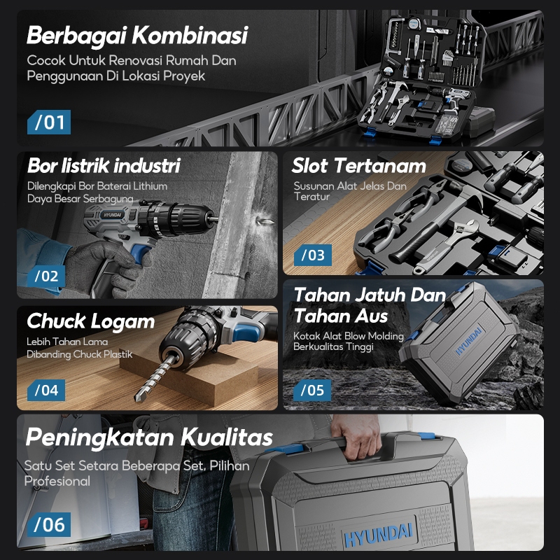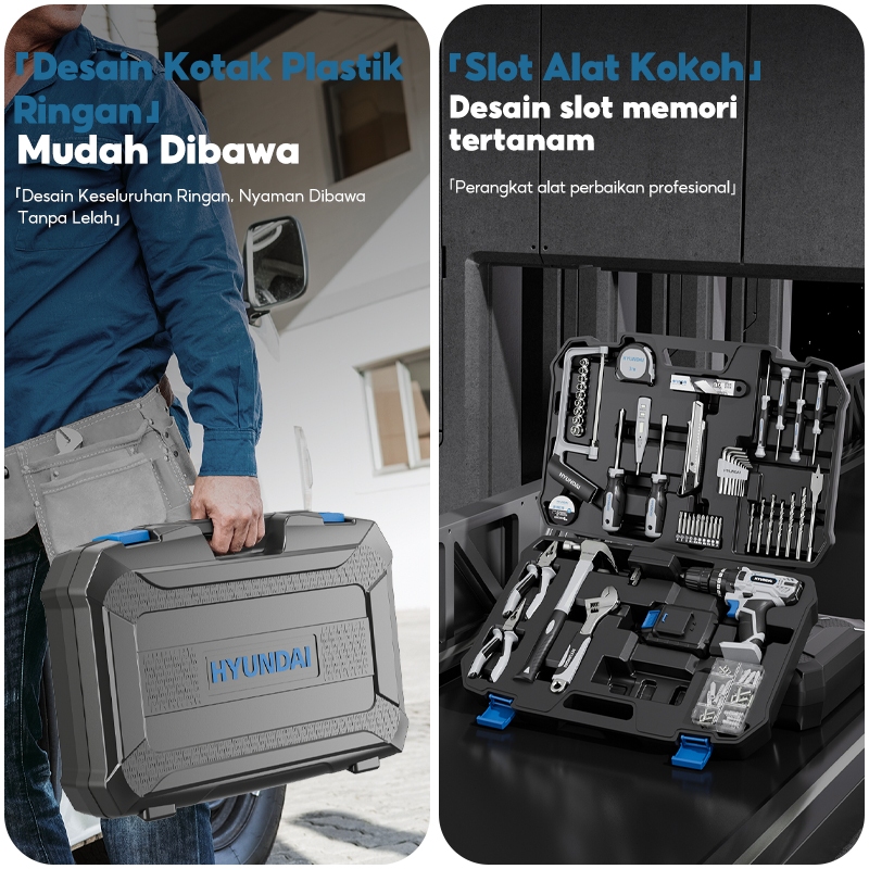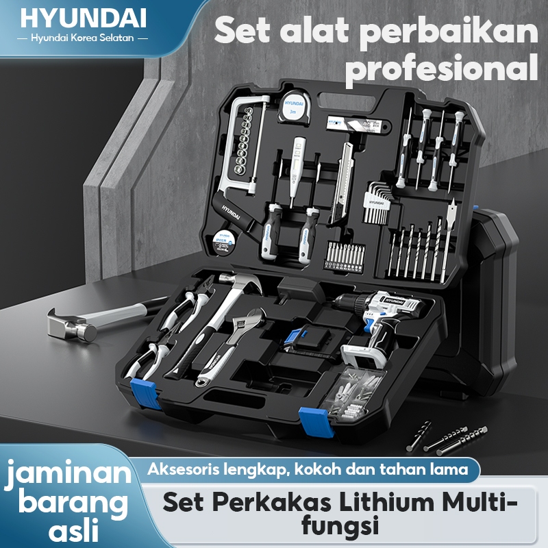 HYUNDAI Bor Listrik Set Lengkap Tool Box Baterai Kunci Obeng Elektrik Set Komplit Toolkit Set