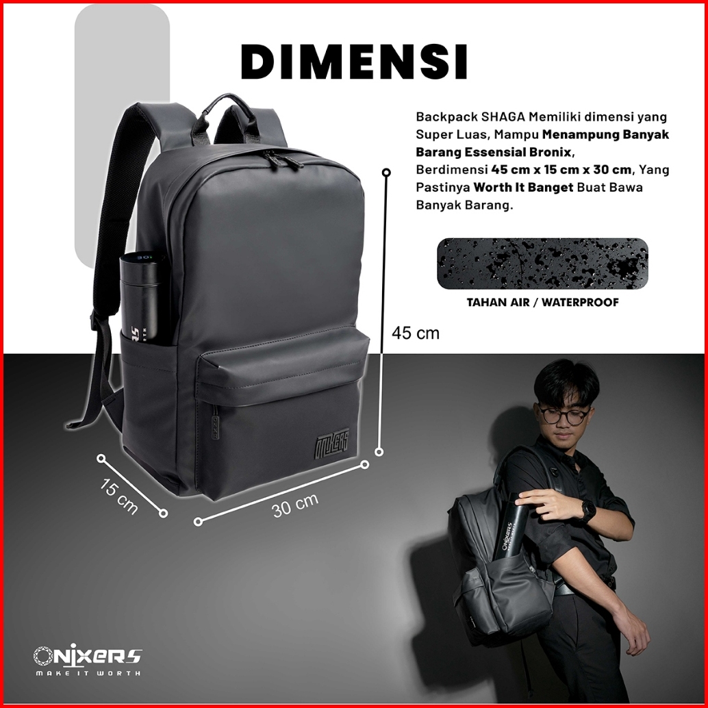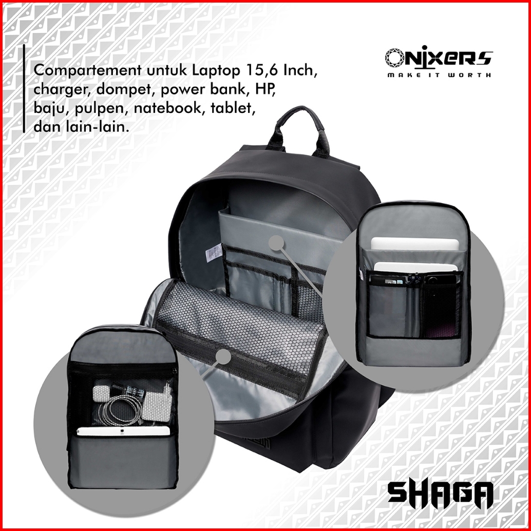 Onixers I Backpack Shaga I Tas Laptop Ransel Pria I Dapper Bag Pria Wanita Anti Air Waterproof Premium I Backpack Sekola