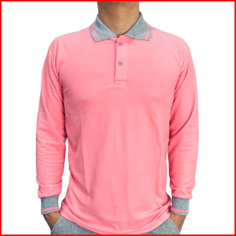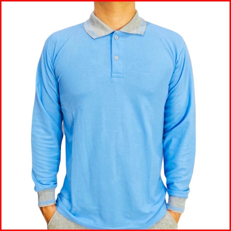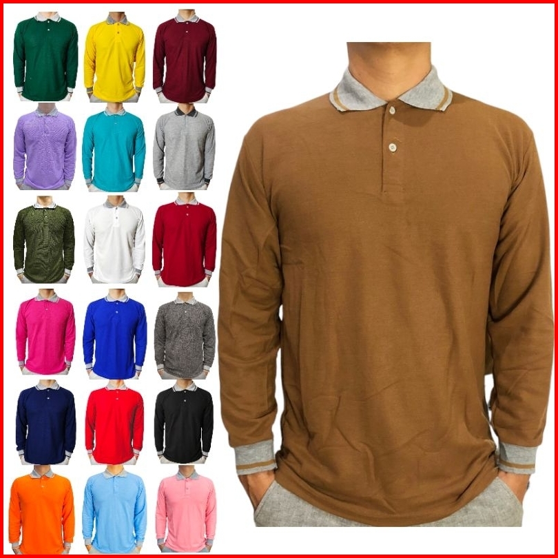 Kaos Polo Shirt Kerah Polo Kerah Lakos Polos Lengan Panjang Size M L Xl Xxl Xxxl