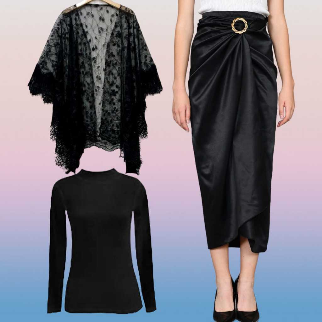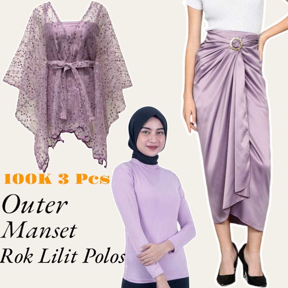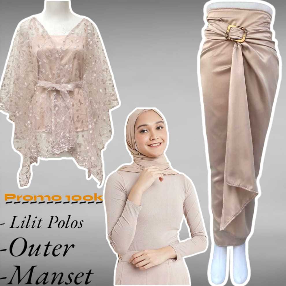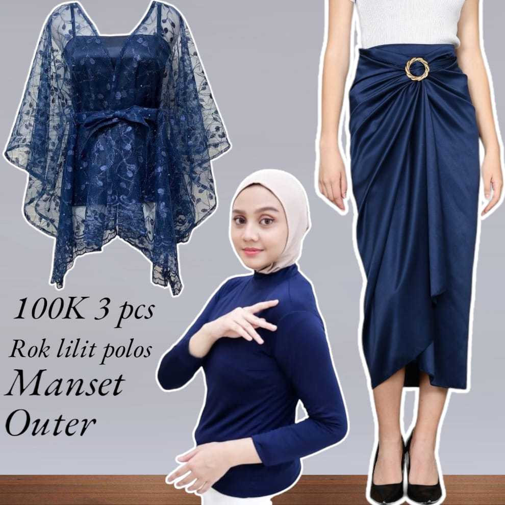 Basmala Shop -Setelan Outer dan Rok Lilit Polos + Manset Hitam Cocok Buat Kondangan Terbaru 2024