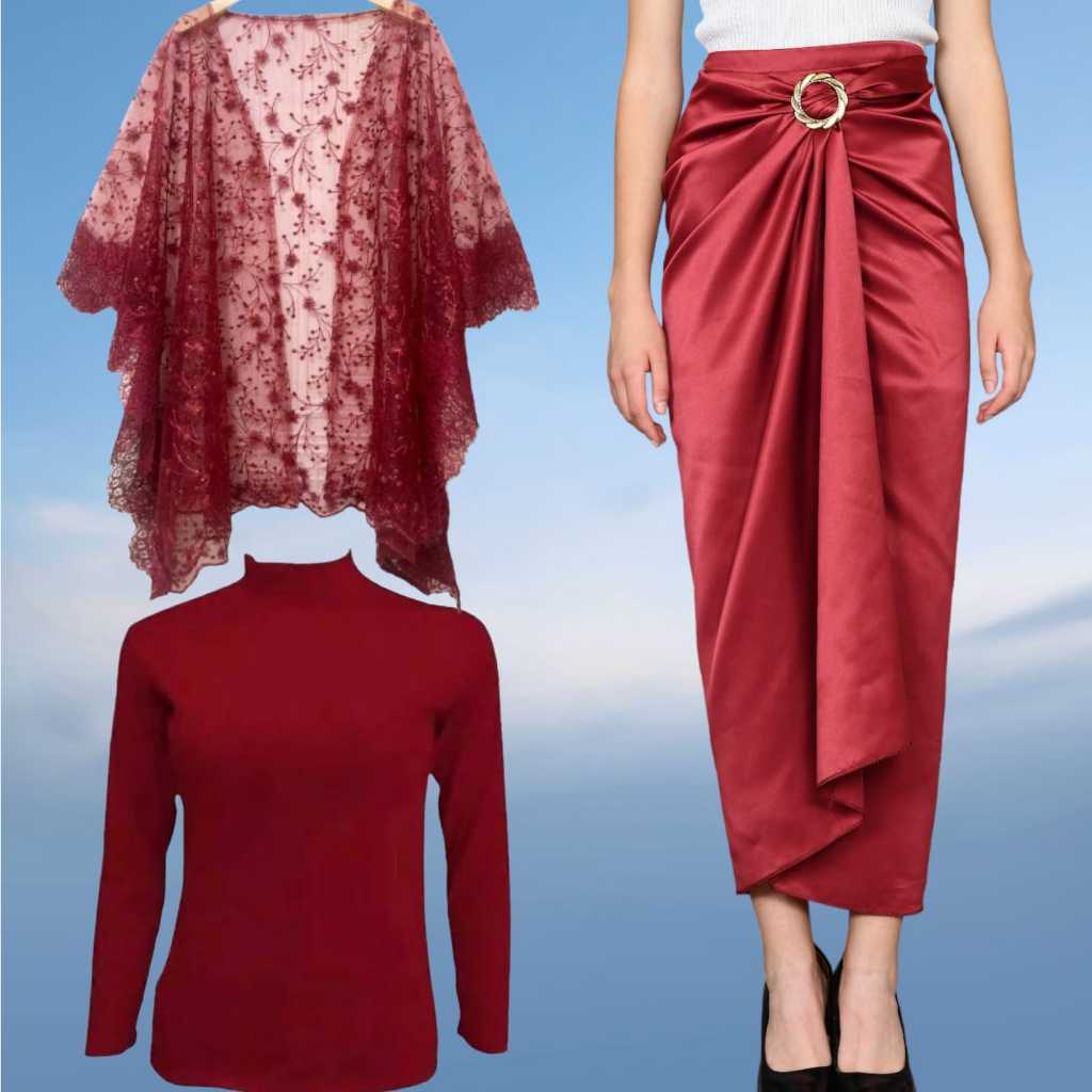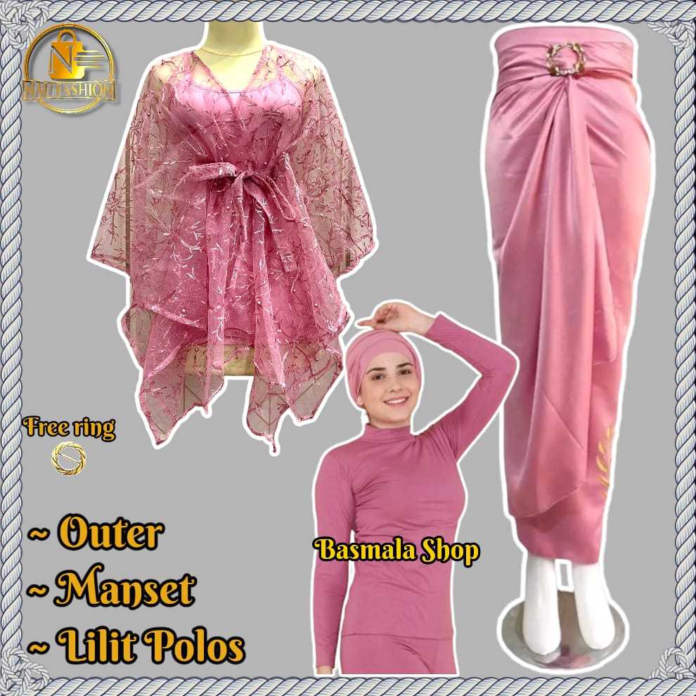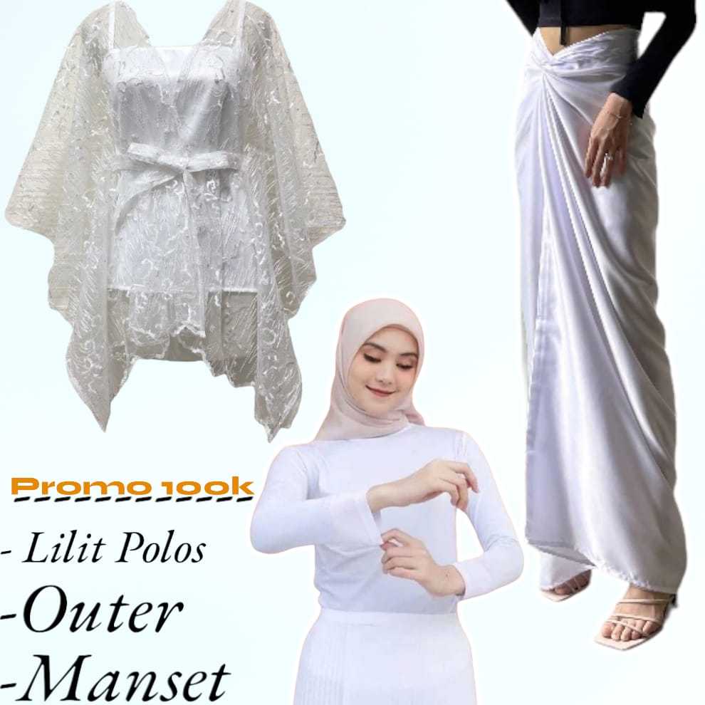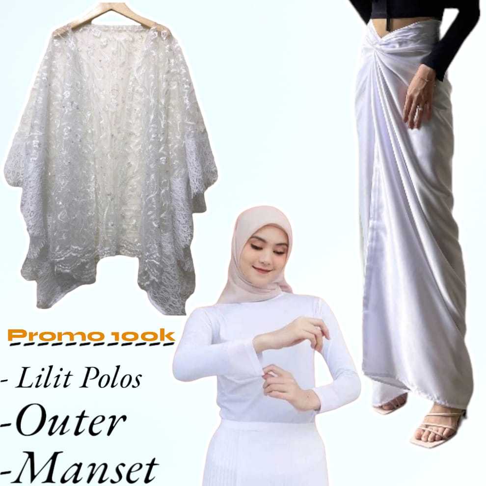Basmala Shop -Setelan Outer dan Rok Lilit Polos + Manset Hitam Cocok Buat Kondangan Terbaru 2024