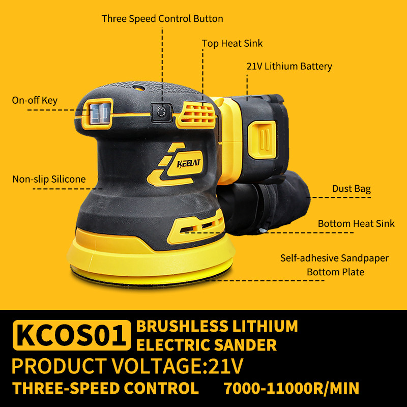 KEELAT KPRO-KCOS01 Brushless Elektrik Sander Mesin Amplas Kayu 125mm Mesin Amplas Tembok