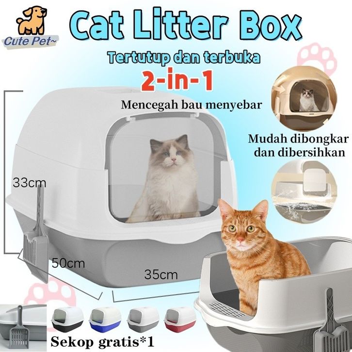 Cat Litter Box 2-in-1 Tempat Bak Pasir Kucing kotak kotoran kucing dengan r ekstra besar Tempat Pup