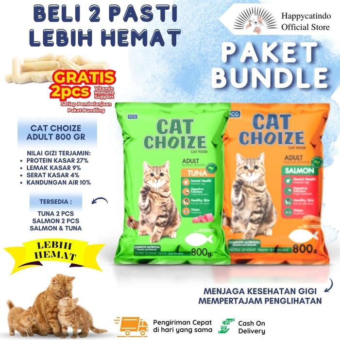 BEBAS KERUSAKAN PAKET BUNDLING PLUS +VITAMIN Makanan Kucing CAT CHOIZE Adult 800 GR Freshpack