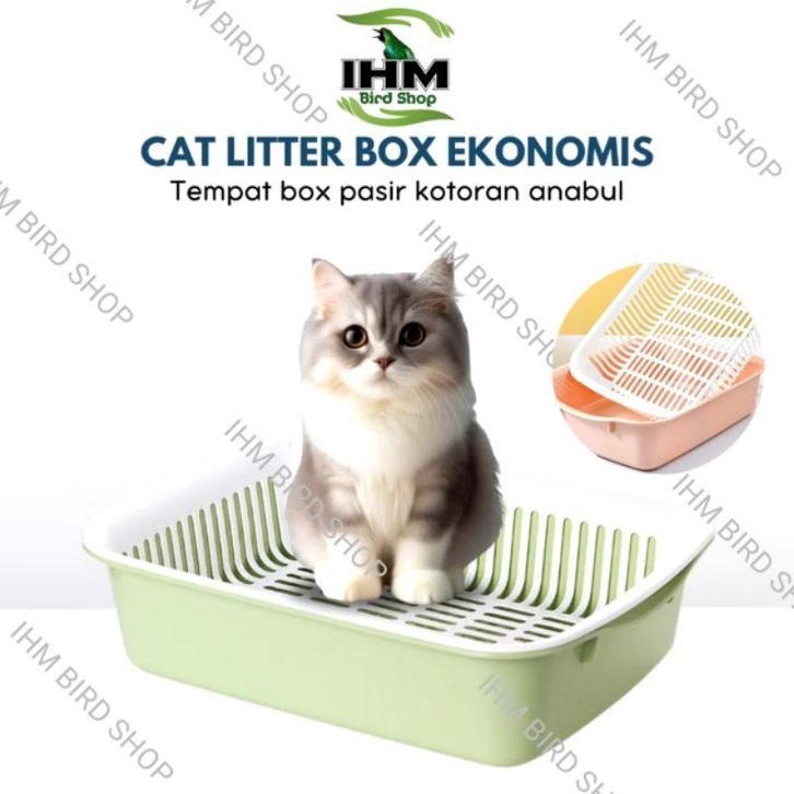 Cat Litter Box Ekonomis 1 Set Dengan Saringan Tempat Bak Baskom Pasir Kotoran Hewan Kucing Anjing
