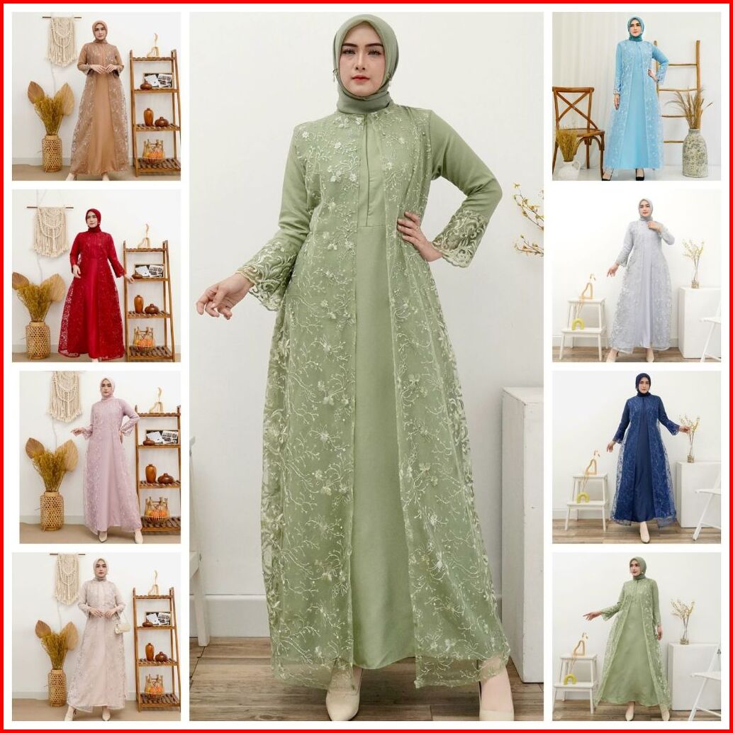 Dijamin Realpict Gamis Hena Busui Tille Bordir Mutiara Gamis Maxi Pesta Kondangan Lebaran Bridesmaid