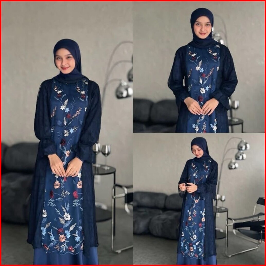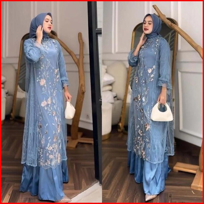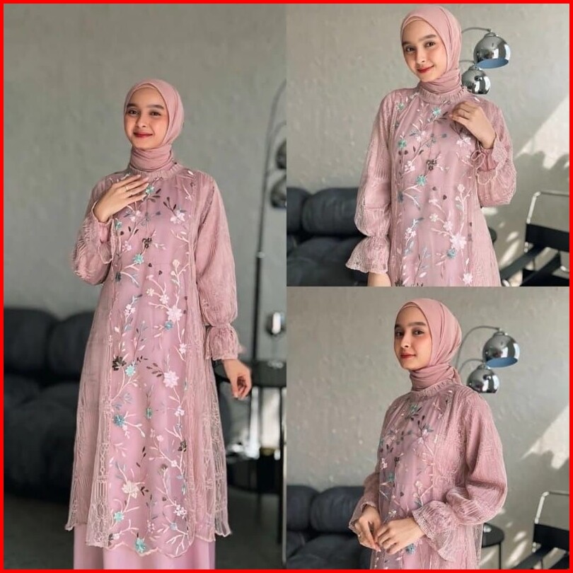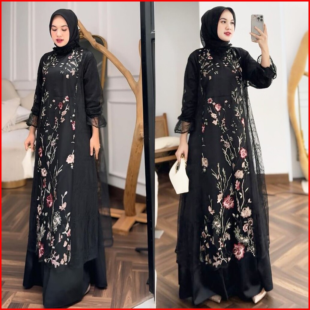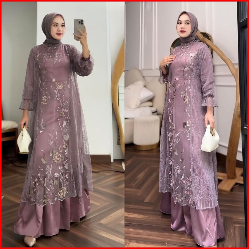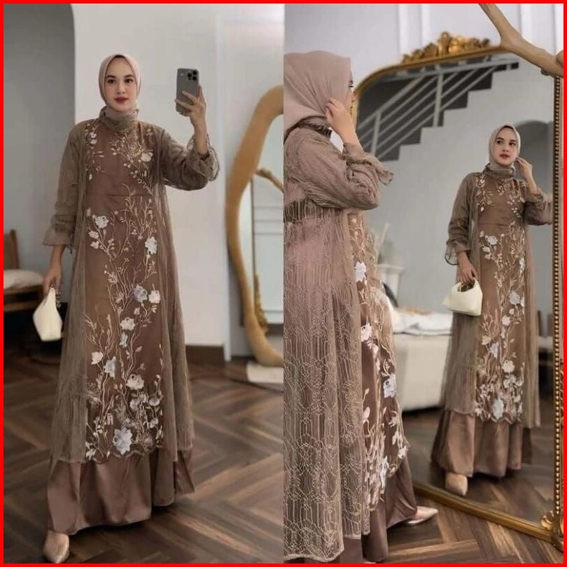 Zeya Dress Pesta Brukat Tille Premium Lebaran Gamis Pesta Mewah Bahan Maxmara Mix Brokat Timbul