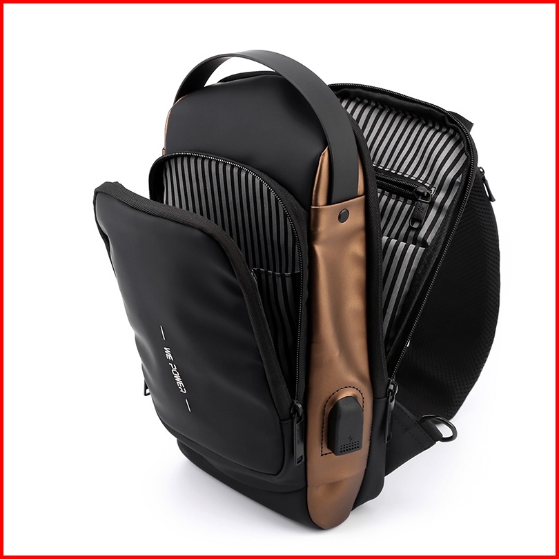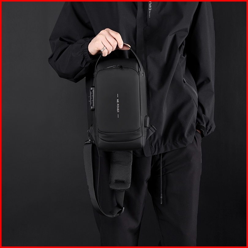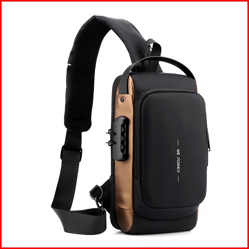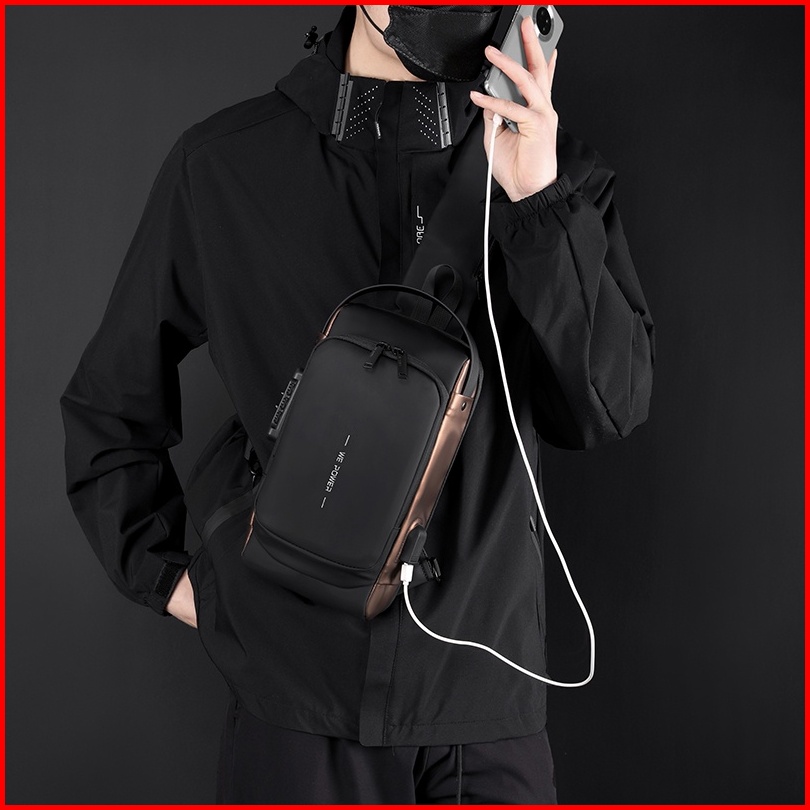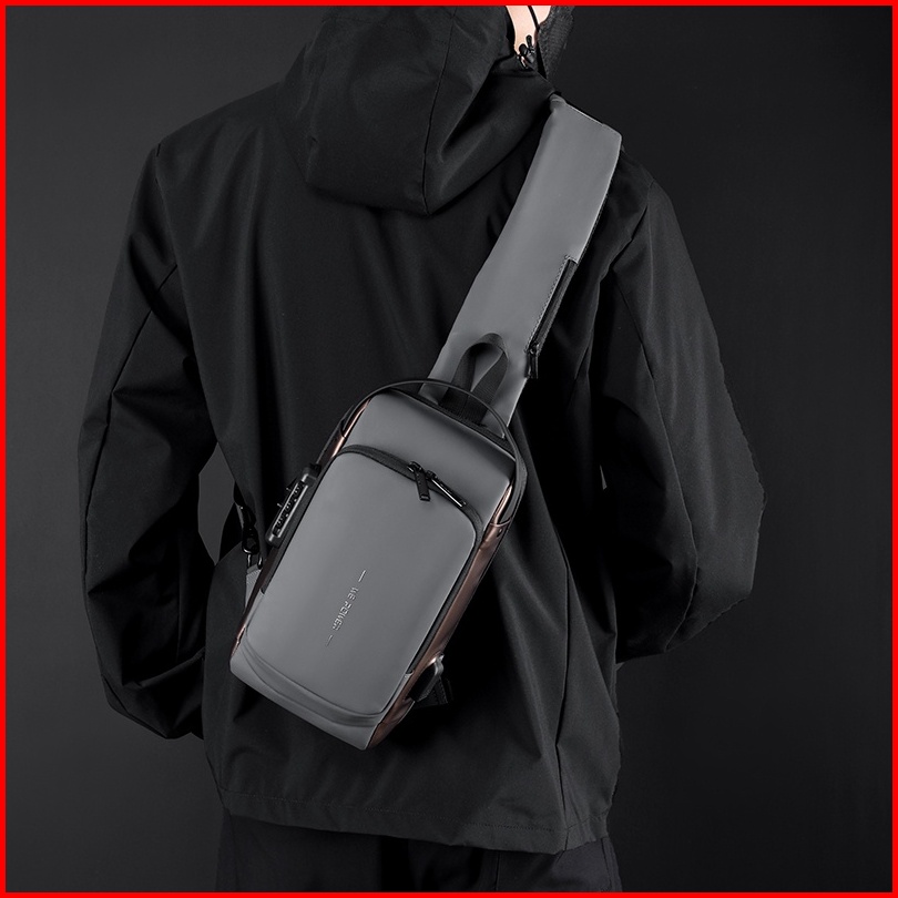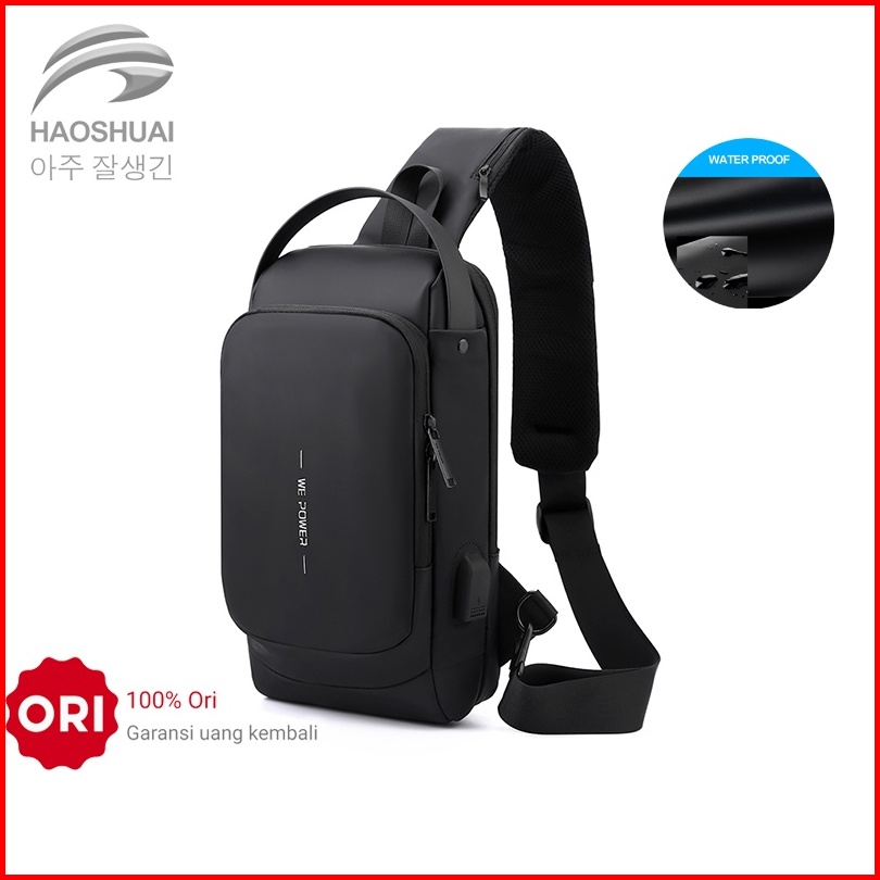 Tas Selempang Pria Haoshuai 1232 Shoulder Bag Usb Port Anti Maling Bahan Premium Waterproof Baeos