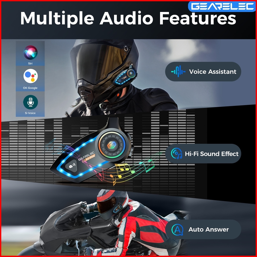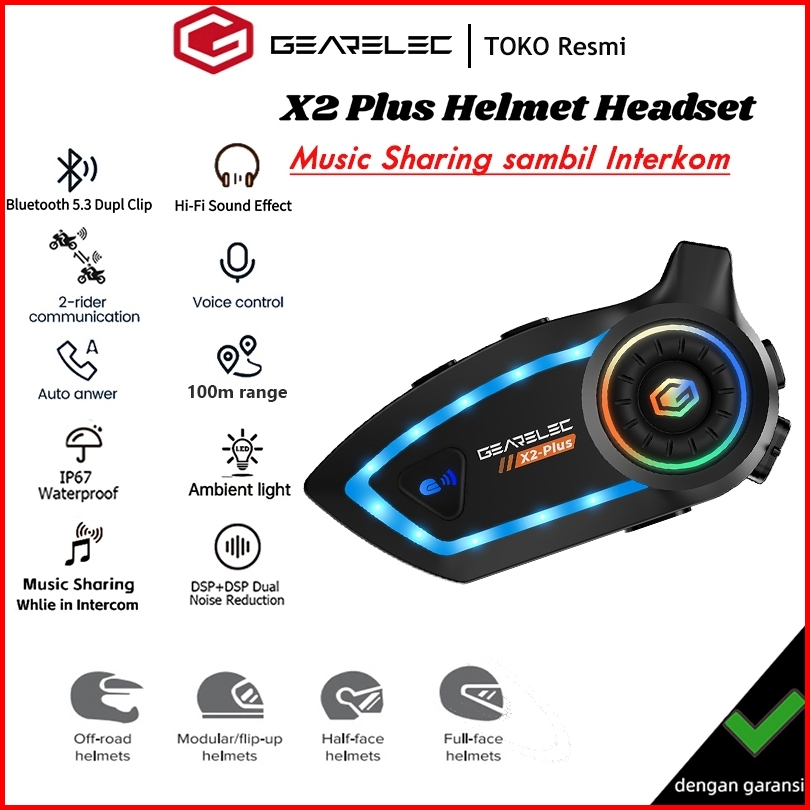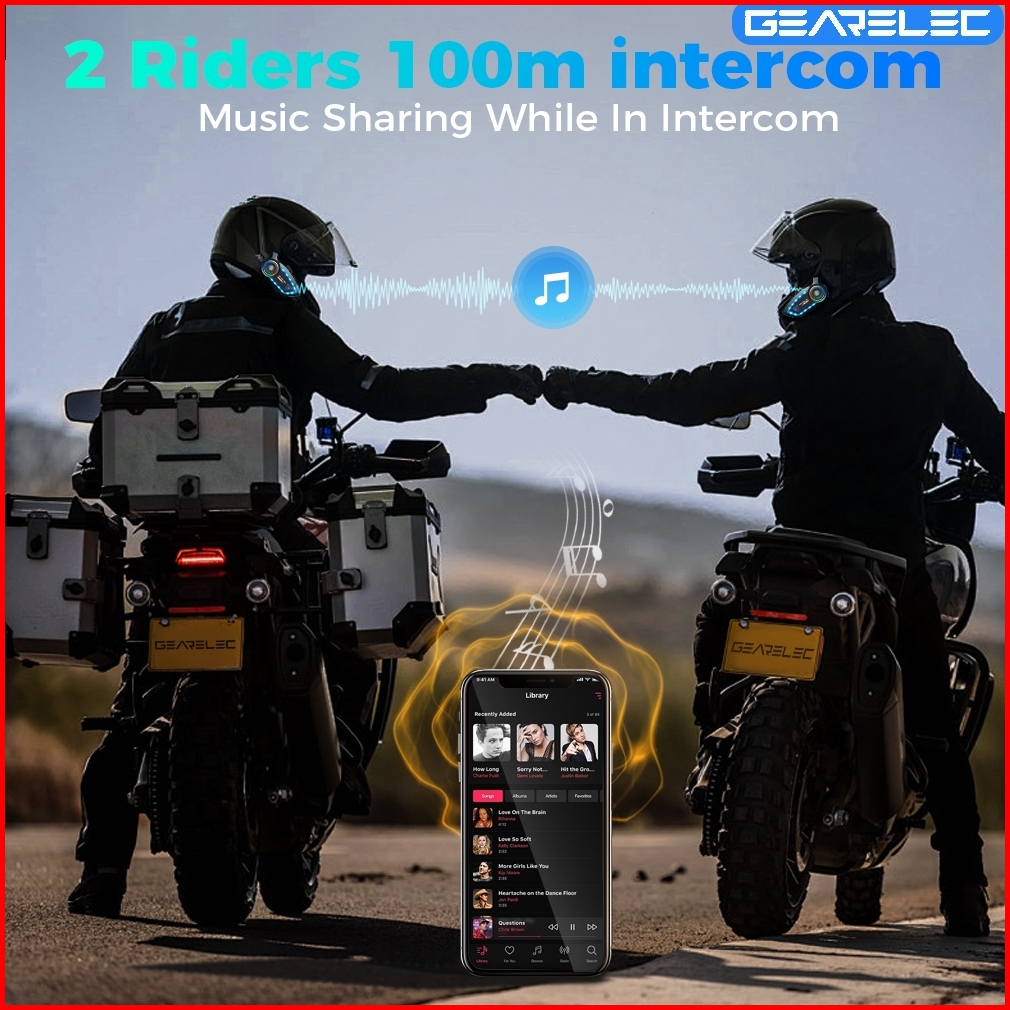 Gearelec X2 Plus Helm Intercom Headset 2 Riders 100m Intercom Support Music Sharing While In Intercom