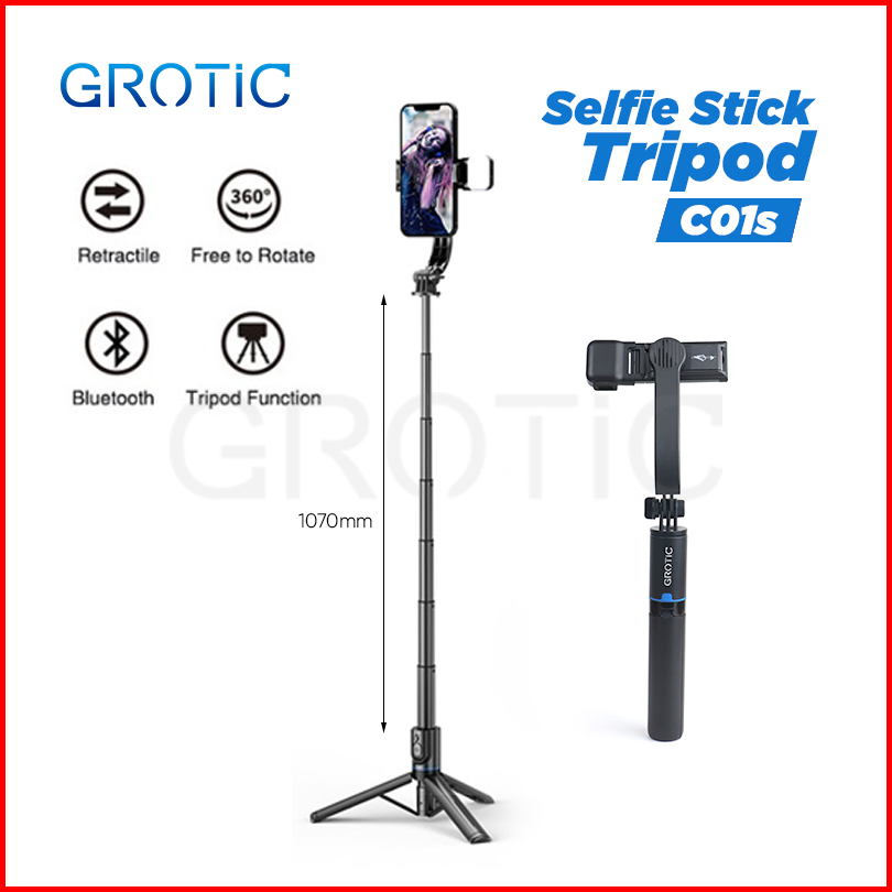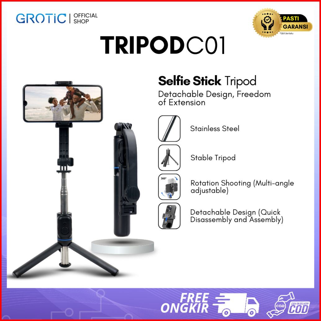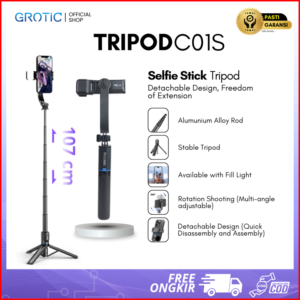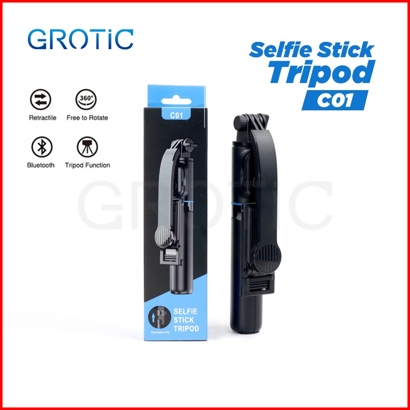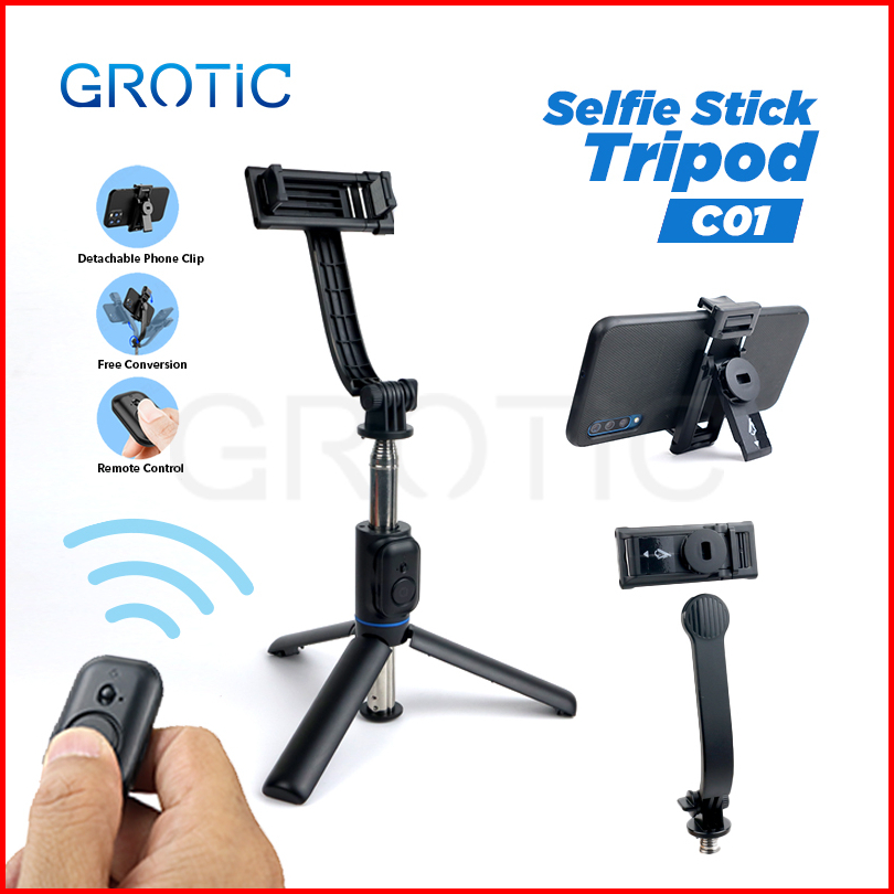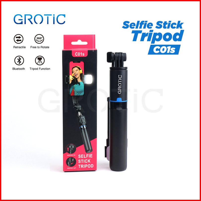 Grotic Tripod Handphone Remote Bluetooth Dengan Lampu Klip Telepon Dapat Dilepas Tongsis Hp C01