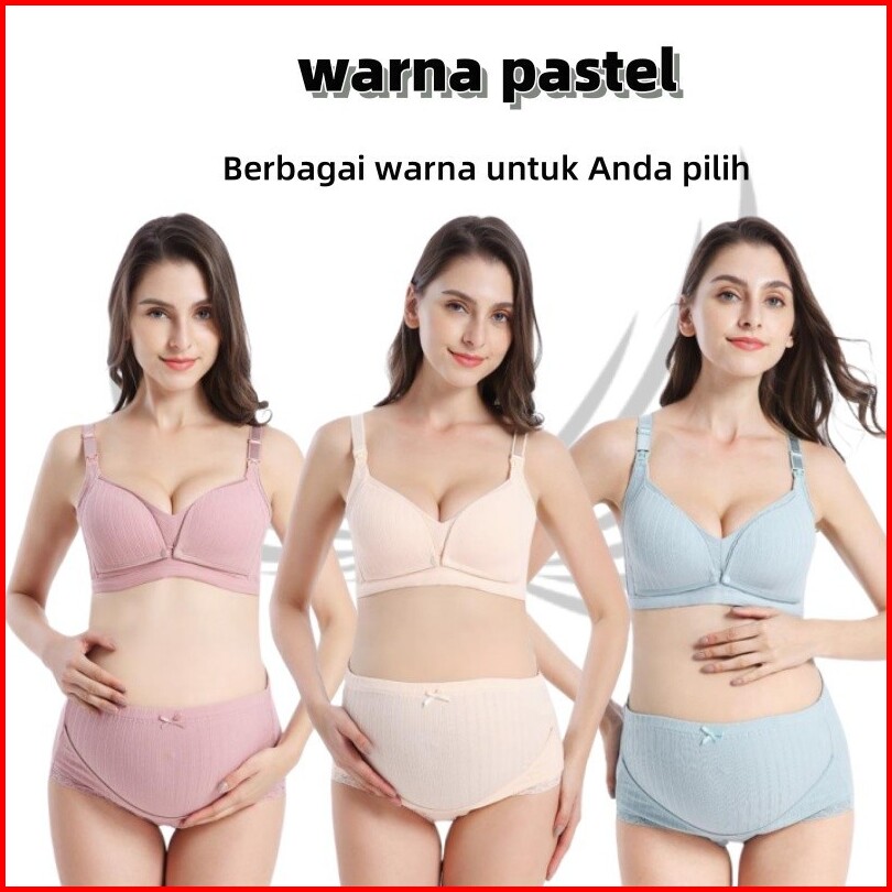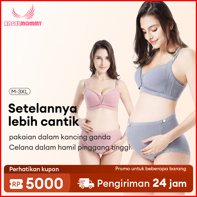 Angel Mommy Set Bra Menyusui Ibu Hamil Kancing Depan Bra Tanpa Kawat Jumbo Celana Dalam Berpinggang Tinggi