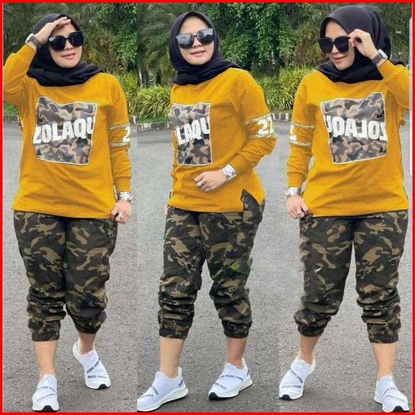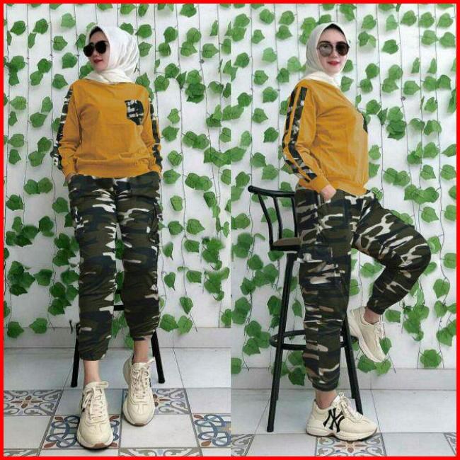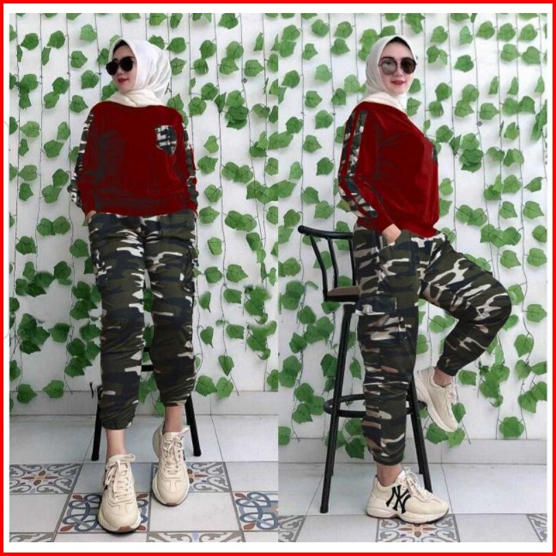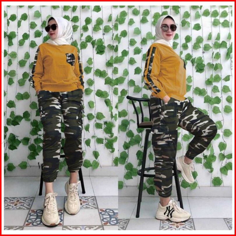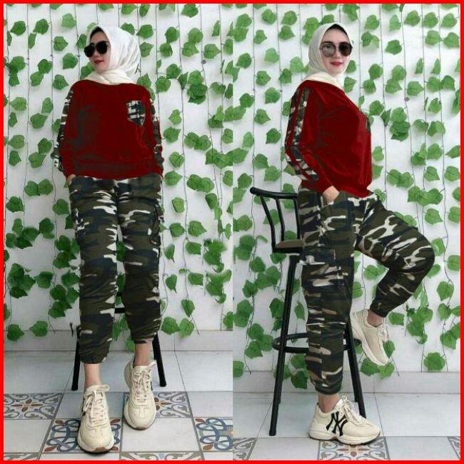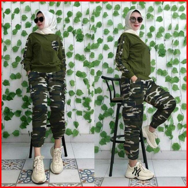 Army Set Wanita 2 Uk Xl Xxl Set Jumbo Set Army Setelan Army Set Joger Trend Fashion Wanita Terkini Elona Set Army