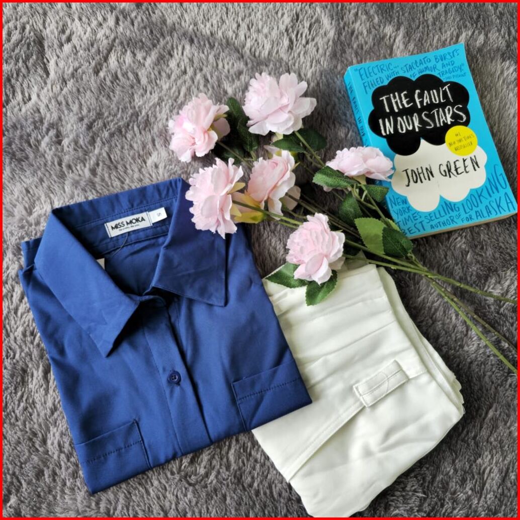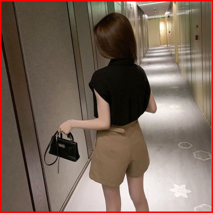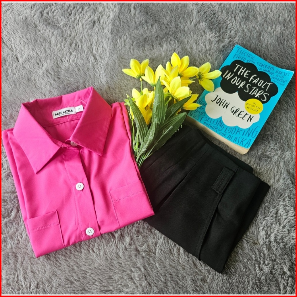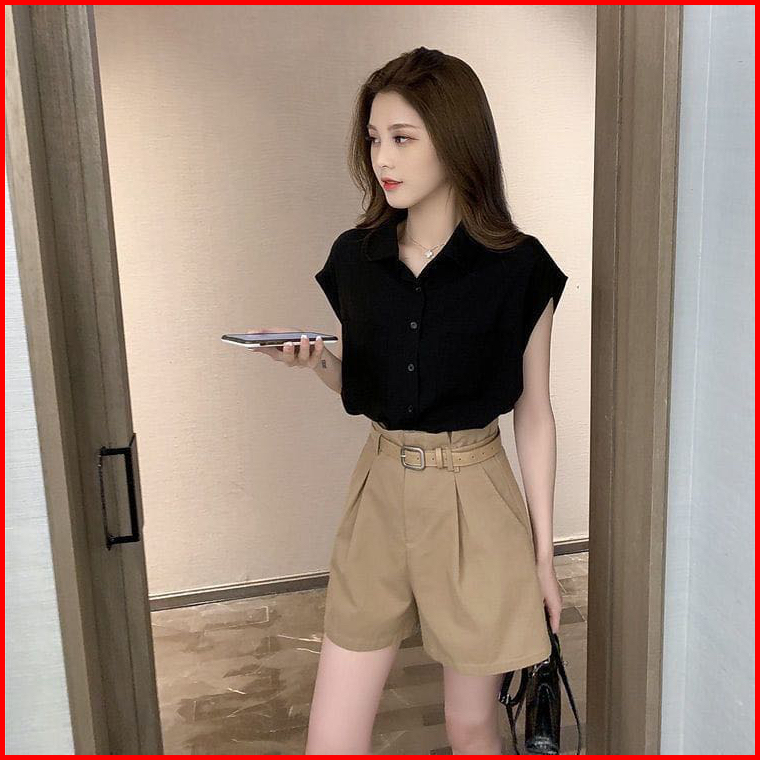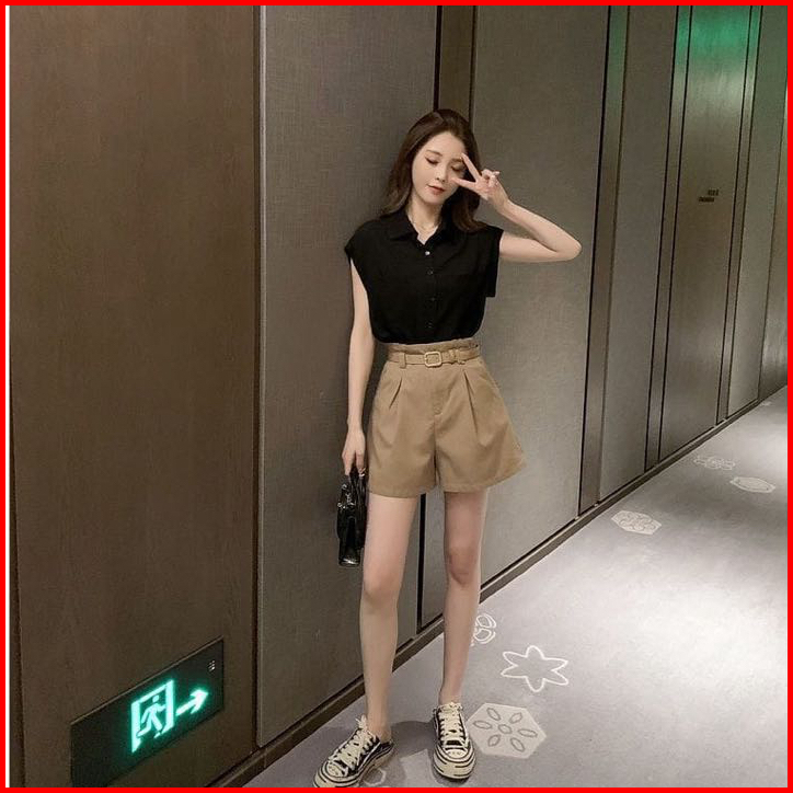 Missmoka Heidi Setelan Kemeja Wanita Dan Celana Pendek A-line Model Korea Belt Dijual Terpisah