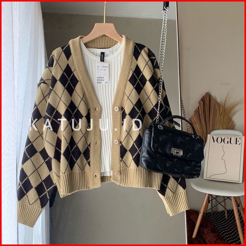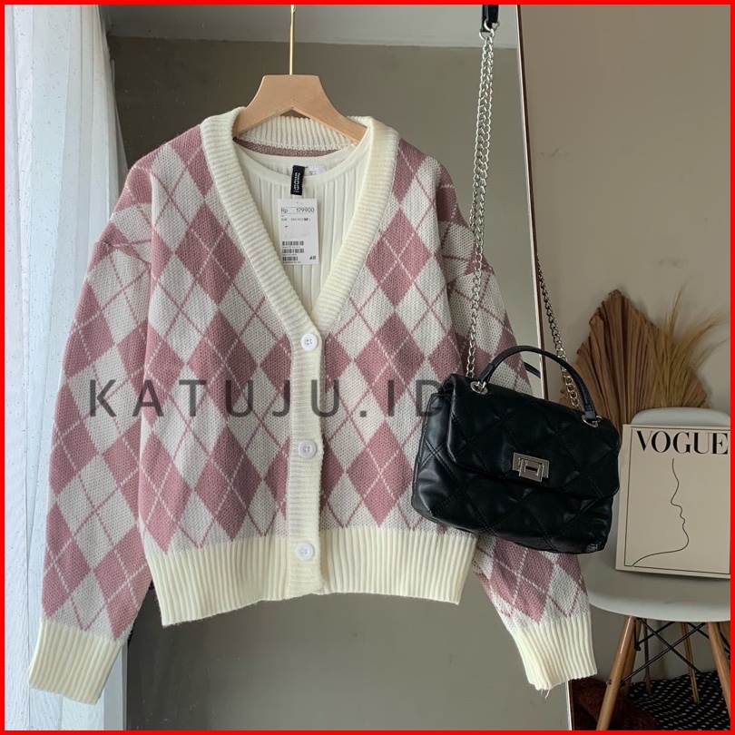 Cardigan Rajut Motif Wind Crop Top Outer Outwear Knit Premium Motif
