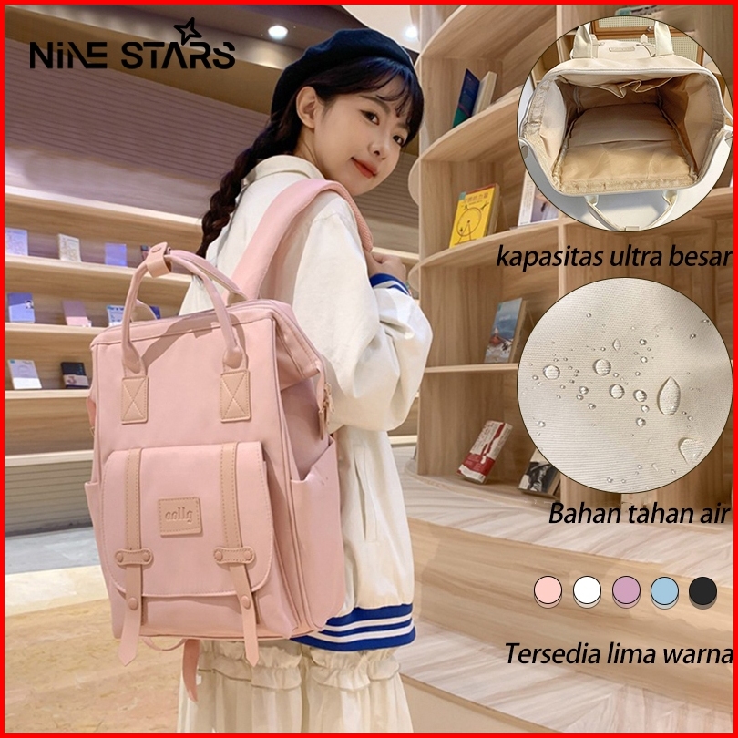 Nine Stars Ransel Wanita Korea Tahan Air Tas Sekolah Perempuan Kapasitas Besar Tas Ransel Kerja