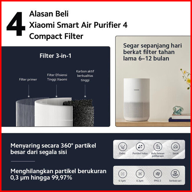 Xiaomi Air Purifier 4 Compact Filter Menyaring Secara 360 Partikel Besar Filter 3-in-1 Tahan Hingga 6-12 Bulan Store