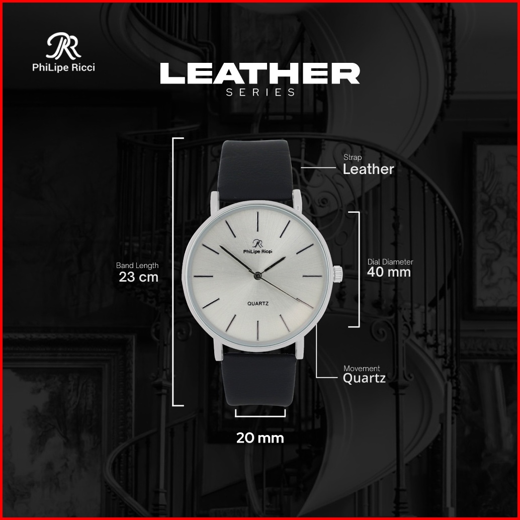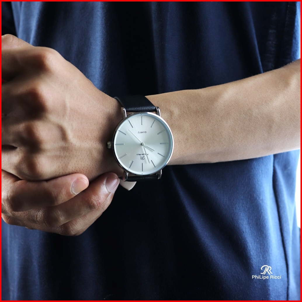 Philipe Ricci Jam Tangan Pria Kulit Kasual Analog Quartz Dial Bulat Strap Tali Leather Model Simpel 4231g Free Box