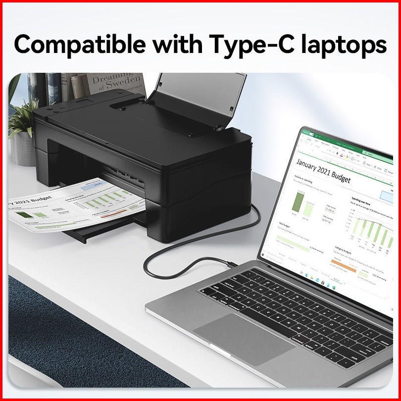 Jasoz Kabel Type C Usb C To Usb 2.0 Printer Cable Scanner 1m 2m3m For Phone Tablet Pc Laptop Printer
