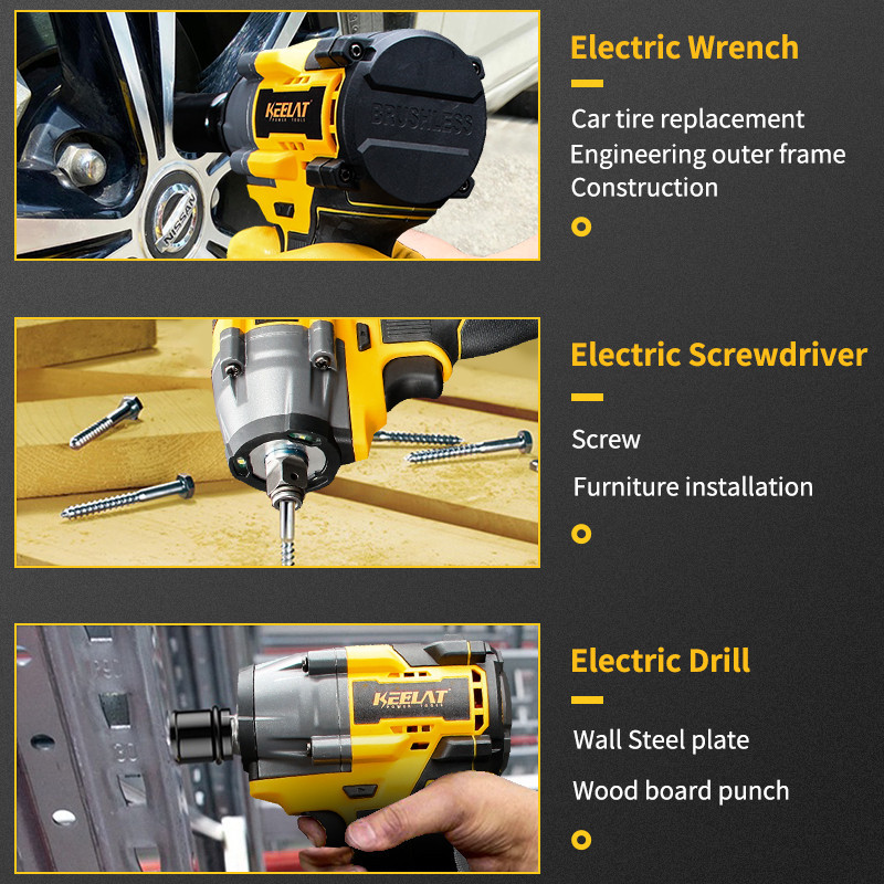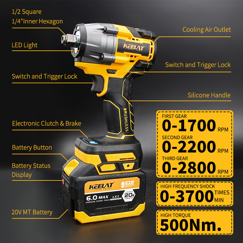 【KEELAT KID011】500NM Brushless Impact wrench Cordless Mesin bor Impact baterai Impact 2baterai 13MM impek baterai torsi