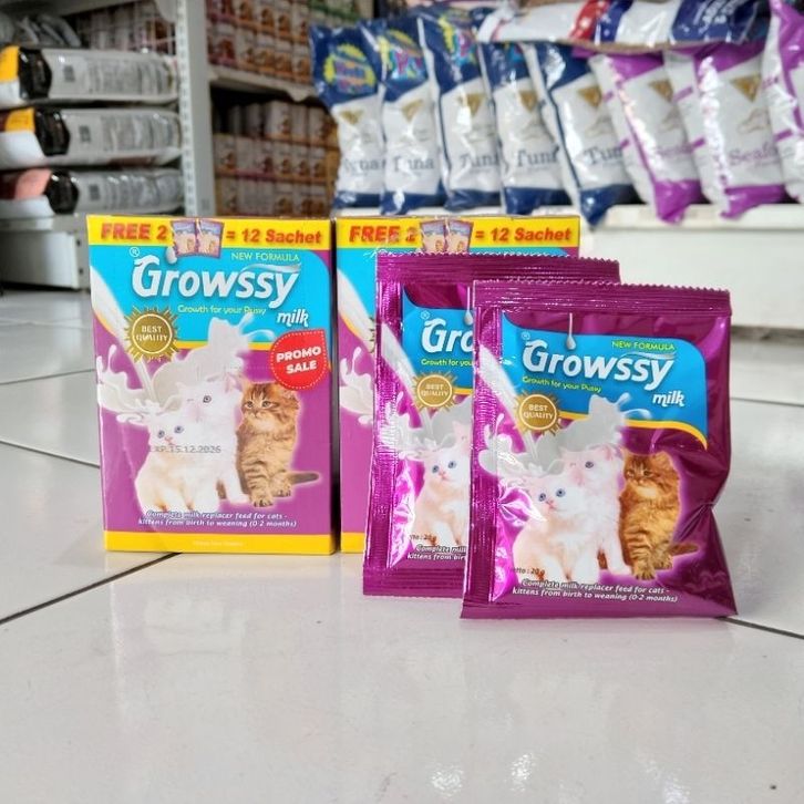 (1 box) Susu Growssy Cat Best Quality new formula 20g - susu bayi kucing terlaris, termurah, dan